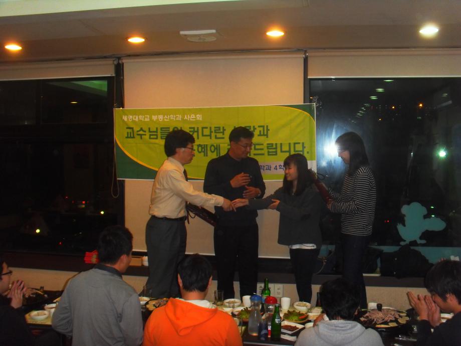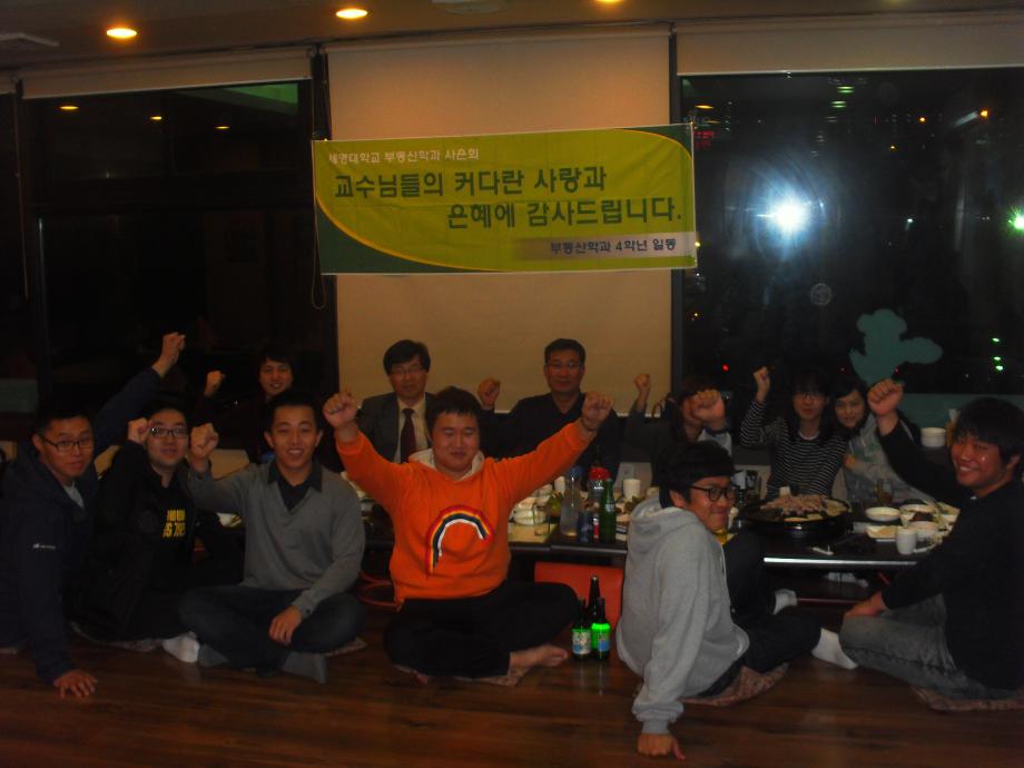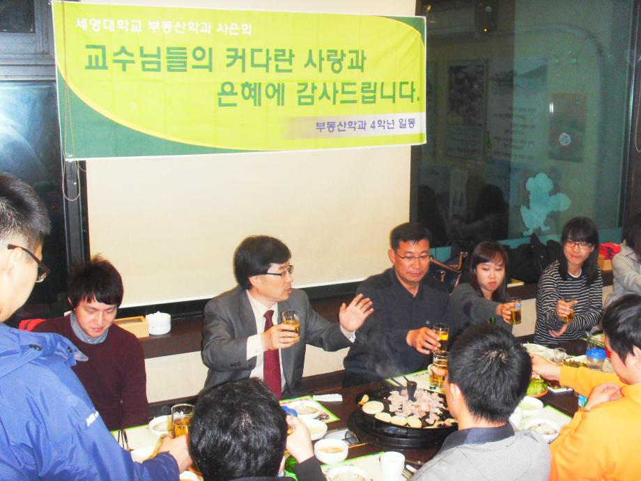 본문 시작 홈으로 학과 소식 학과소개 취업 및 진로 언론 및 보도 학과 소식 대학원 홈페이지가이드 행사사진게시판 행사사진게시판 공지사항 일반자료실 강의자료실 부동산학보 동아리 행사사진게시판 페이스북 트위터 프린트 부동산학과 제3회 사은회가 개최되었습니다. 전체관리자 7355 2011-11-11 부동산학과 제3회 사은회가 개최되었습니다. 이날 교수님과 조교님, 졸업예정자, 학생회장이 참석하여 교수님의 가르침에 감사드리고 지나온 4년간의 회고와 취업 및 미래 등에 관한 이야기를 나누며 즐거운 시간을 갖었다. 목록 이전지적박물관 현장견학(제천에서 2008년3월 22일) 이전견학 후 담당부서 : 부동산지적학과 담당자 : - 연락처 : 043-649-1784 최종수정일 : 2024-10-26 만족도조사 만족도 조사 이 페이지에서 제공하는 정보에 대하여 만족하시나요? 매우만족 만족 보통 불만족 매우불만족