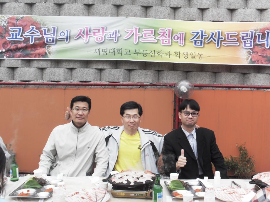 본문 시작 홈으로 학과 소식 학과소개 취업 및 진로 언론 및 보도 학과 소식 대학원 홈페이지가이드 행사사진게시판 행사사진게시판 공지사항 일반자료실 강의자료실 부동산학보 동아리 행사사진게시판 페이스북 트위터 프린트 2010년 스승의 날 행사 전체관리자 8311 2010-05-18 2010년 5월 13일(목) 저녁 6시부터 "스승의 날 행사"를 돈페테리아 야외식당에서 개최하였다. 이날 학과 교수님(김행종, 장용삼, 권기욱 교수님)과 조교 선생님, 재학생 전원이 참석한 가운데, "스승의 은혜" 와 정성스레 준비한 선물 증정식, 감사의 축배 등 뜻있고 의미있는 감사의 시간을 가졌다. 부동산학과 화이팅!!!! 목록 이전2010 제 20 회 청룡체전 부동산학과 화이팅!!! 다음 제2차 1학년 멘토링 미팅 담당부서 : 부동산지적학과 담당자 : - 연락처 : 043-649-1784 최종수정일 : 2024-10-26 만족도조사 만족도 조사 이 페이지에서 제공하는 정보에 대하여 만족하시나요? 매우만족 만족 보통 불만족 매우불만족