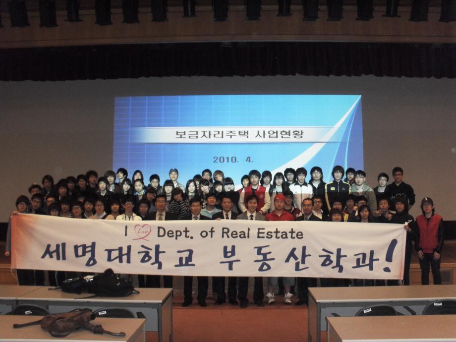 본문 시작 홈으로 학과 소식 학과소개 취업 및 진로 언론 및 보도 학과 소식 대학원 홈페이지가이드 행사사진게시판 행사사진게시판 공지사항 일반자료실 강의자료실 부동산학보 동아리 행사사진게시판 페이스북 트위터 프린트 2010년 부동산학과 LH공사(토지주택공사) 방문 전체관리자 7386 2010-04-27 2010년 부동산학과 토지주택공사 현장교육 실시 세명대학교 부동산학과(학과장 : 김행종 교수)는 2010년 4월 27일(화) 재학생 90여명과 교수3명이 토지주택공사(성남시 분당구 정자동)를 방문하였다. 이날 방문에서는 토지주택공사 관계자의 "보금자리주택 사업 현황"과 "토지주택박물관", "화성 동탄 신도시 개발"에 대한 브리핑을 들을수 있었다. 목록 이전2010년 부동산학과 LH공사(토지주택공사) 방문 이전2010학년도 학생회 임명장 수여 담당부서 : 부동산지적학과 담당자 : - 연락처 : 043-649-1784 최종수정일 : 2024-10-26 만족도조사 만족도 조사 이 페이지에서 제공하는 정보에 대하여 만족하시나요? 매우만족 만족 보통 불만족 매우불만족