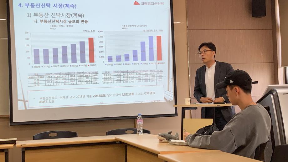 본문 시작 홈으로 학과 소식 학과소개 취업 및 진로 언론 및 보도 학과 소식 대학원 홈페이지가이드 행사사진게시판 행사사진게시판 공지사항 일반자료실 강의자료실 부동산학보 동아리 행사사진게시판 페이스북 트위터 프린트 2019년도 부동산학과 제4회 학술특강(부동산자산관리실무체험 "부동산 신탁의 개념과 이해") 부동산학과 8773 2019-07-15 ◎ 2019학년도 제4회 학술특강 시행 부동산학과에서는 “부동산자산관리실무체험” 교과목과 관련하여 아래와 같이 학술특강을 시행하였습니다. 부동산 산업 실무자의 특강을 통한 부동산산업을 간접체험하고, 관련 지식을 보다 심화 학습하였습니다. ▸ 일 시 : 2019년 05월 24일(금) 09:30~13:30 ▸ 주 제 : 부동산 신탁의 개념과 이해 ▸ 강연자 : 코람코자산신탁 사업본부장 상무 이충성 목록 이전2019학년도 제3회 학술특강(부동산자산관리실무체험 "부동산 개발/펀드투자 사례 -상업시설중심-") 다음 2019학년도 꿈설계학기 담당부서 : 부동산지적학과 담당자 : - 연락처 : 043-649-1784 최종수정일 : 2024-10-26 만족도조사 만족도 조사 이 페이지에서 제공하는 정보에 대하여 만족하시나요? 매우만족 만족 보통 불만족 매우불만족