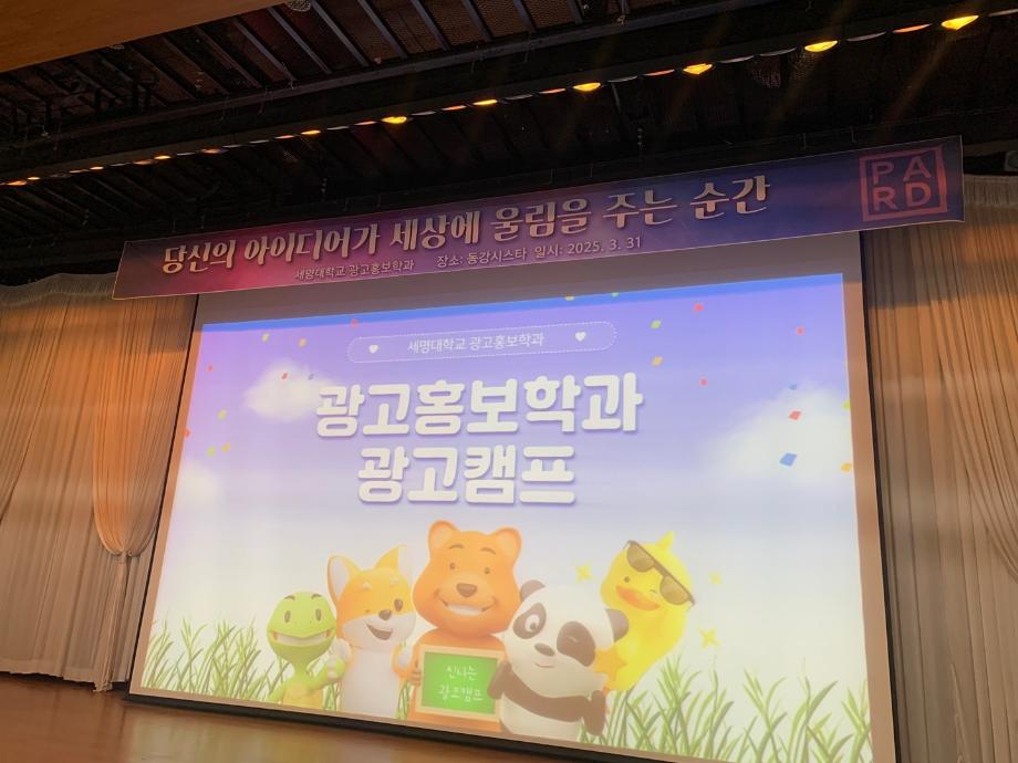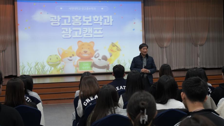 본문 시작 홈으로 특별CC프로그램 매력적인 학과소개 흥미로운 교육과정 특별CC프로그램 We can 취업 따뜻한 커뮤니티 홈페이지가이드 광고캠프 광고캠프 광고영상 제작실습 광고디자인 자격증취득 C&E(도전!경험!) 활동 작품 활동 활동 페이스북 트위터 프린트 2025광고캠프 광고홍보학과 1219 2025-04-18 세명대 광고홍보학과의 시그니처 프로그램 <2025년도 광고캠프> 개최 _일시 : 25년 3월 24~ 24일(1박 2일) _장소 : 영월 동강 시스타 _대상 : 광고홍보학과 1~4학년 _프로그램 : 광고기획서 경쟁 PT, 힐링시간 등 목록 이전2024광고캠프