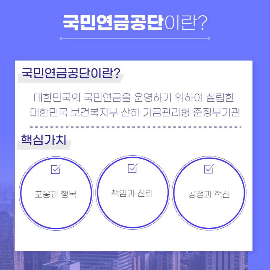 본문 시작 홈으로 커뮤니티 학과소개 교수소개 교육과정 현장실습 및 취업정보 커뮤니티 홈페이지가이드 학생 소통 광장 학과공지 학사일정 학생회 동아리 학생 소통 광장 포토갤러리 전공자료실 서식자료실 학생 소통 광장 페이스북 트위터 프린트 세명대학교 사회복지학과 졸업 후 진로 국민연금 편 사회복지학과 2795 2022-07-25 세명대학교 사회복지학과 졸업 후 진로 국민연금 편입니다 목록 이전세명대학교 사회복지학과 졸업 후 진로 국민건강보험공단 편 다음 세명대학교 사회복지학과 졸업 후 질로 근로복지공단 편 담당부서 : 사회복지학과 담당자 : - 연락처 : 043-649-1799 최종수정일 : 2024-10-26 만족도조사 만족도 조사 이 페이지에서 제공하는 정보에 대하여 만족하시나요? 매우만족 만족 보통 불만족 매우불만족