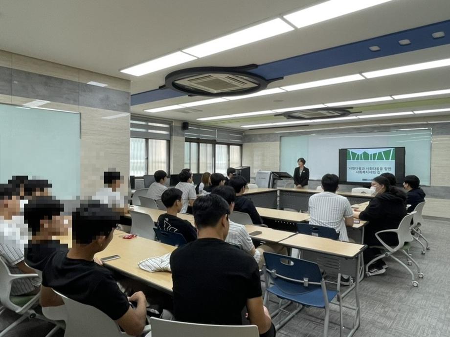 본문 시작 홈으로 커뮤니티 학과소개 교수소개 교육과정 현장실습 및 취업정보 커뮤니티 홈페이지가이드 학생 소통 광장 학과공지 학사일정 학생회 동아리 학생 소통 광장 포토갤러리 전공자료실 서식자료실 학생 소통 광장 페이스북 트위터 프린트 2023힉년도 제천제일고등학교 전공체험 사회복지학과 3962 2023-05-23 2023.05.23(화) 제천제일고등학교 학생들과 전공체험을 진행하였습니다. 박소영 교수님께서 사회복지에 대한 강의를 진행하셨고 학과 재학생과 제천여자고등학교 학생들이 함께 휠체어, 목발, 시각장애인용지팡이, 노인체험을 해보면서 사회복지학과에 대한 이해도를 높이는 시간이 되었습니다. 목록 이전2023학년도 제천여자고등학교 전공체험 다음 2023학년도 영월교도소 교외교육 담당부서 : 사회복지학과 담당자 : - 연락처 : 043-649-1799 최종수정일 : 2024-10-26 만족도조사 만족도 조사 이 페이지에서 제공하는 정보에 대하여 만족하시나요? 매우만족 만족 보통 불만족 매우불만족