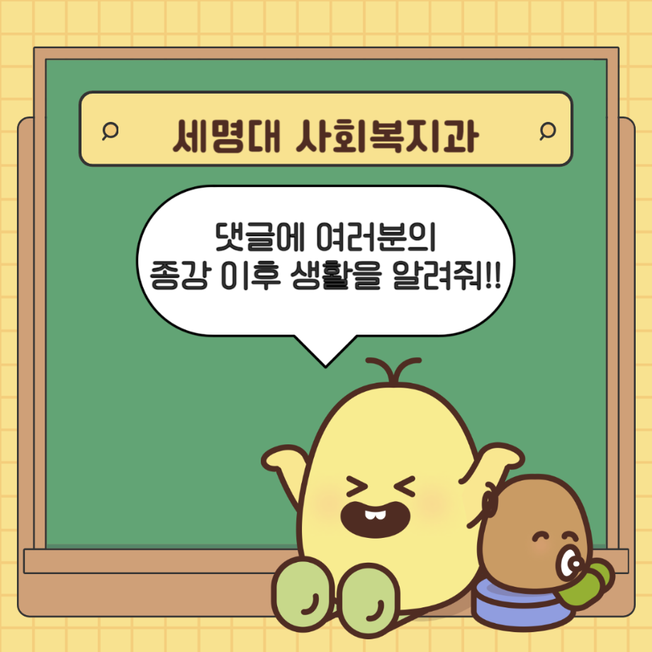 본문 시작 홈으로 커뮤니티 학과소개 교수소개 교육과정 현장실습 및 취업정보 커뮤니티 홈페이지가이드 학생 소통 광장 학과공지 학사일정 학생회 동아리 학생 소통 광장 포토갤러리 전공자료실 서식자료실 학생 소통 광장 페이스북 트위터 프린트 세명대학교 사회복지학과 방학일상이 궁금해요!! 사회복지학과 3342 2023-07-13 '세명대학교 사회복지학과 방학일상이 궁금해요!!'편입니다. 목록 이전세명대학교 사회복지하과 실습 어떻게 시작하지? 다음 세명고등학교 입시박람회 진행 담당부서 : 사회복지학과 담당자 : - 연락처 : 043-649-1799 최종수정일 : 2024-10-26 만족도조사 만족도 조사 이 페이지에서 제공하는 정보에 대하여 만족하시나요? 매우만족 만족 보통 불만족 매우불만족
