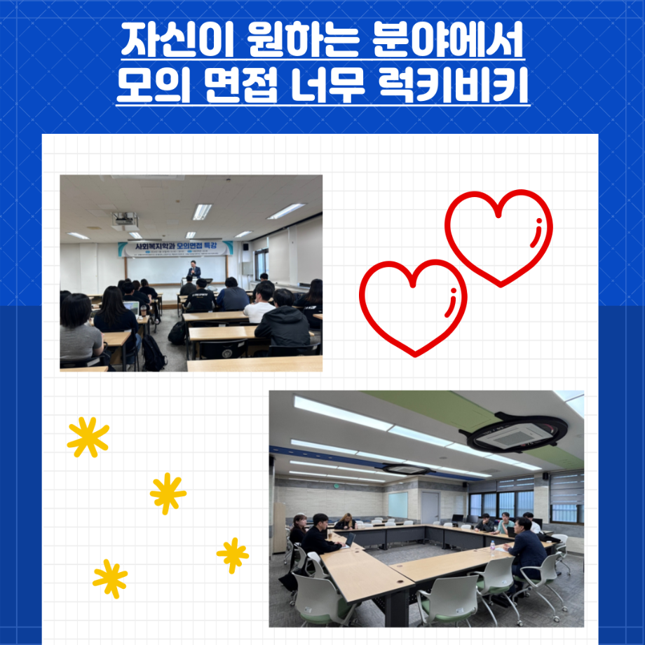 본문 시작 홈으로 커뮤니티 학과소개 교수소개 교육과정 현장실습 및 취업정보 커뮤니티 홈페이지가이드 학생 소통 광장 학과공지 학사일정 학생회 동아리 학생 소통 광장 포토갤러리 전공자료실 서식자료실 학생 소통 광장 페이스북 트위터 프린트 세명대학교 사회복지학과 모의면접 럭키비키 사회복지학과 3150 2024-07-02 '세명대학교 사회복지학과 모의면접 럭키비키' 내용입니다. 목록 이전세명대학교 사회복지학과 교외 견학 영월교도소 편 다음 세명대학교 사회복지학과 종강 이후 계획은? 담당부서 : 사회복지학과 담당자 : - 연락처 : 043-649-1799 최종수정일 : 2024-10-26 만족도조사 만족도 조사 이 페이지에서 제공하는 정보에 대하여 만족하시나요? 매우만족 만족 보통 불만족 매우불만족