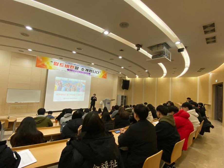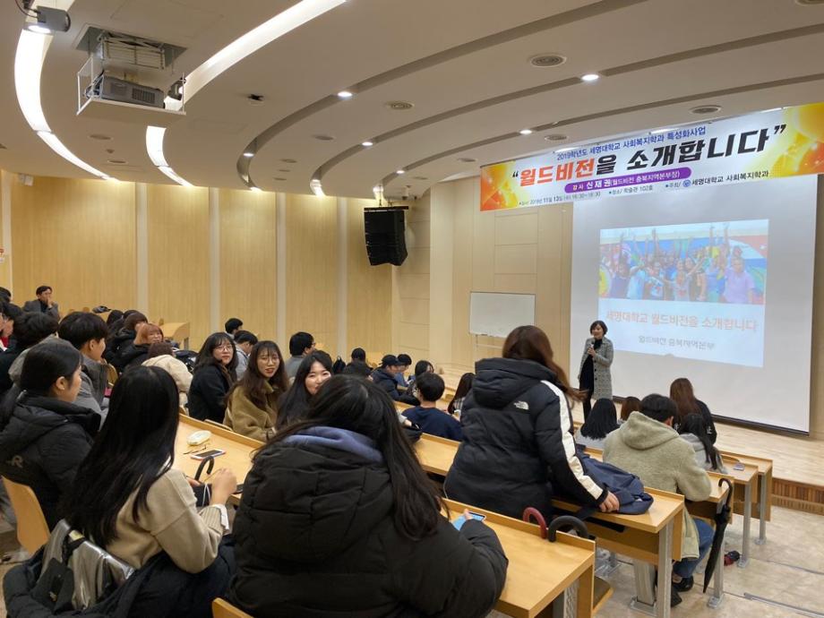 본문 시작 홈으로 커뮤니티 학과소개 교수소개 교육과정 현장실습 및 취업정보 커뮤니티 홈페이지가이드 학생 소통 광장 학과공지 학사일정 학생회 동아리 학생 소통 광장 포토갤러리 전공자료실 서식자료실 학생 소통 광장 페이스북 트위터 프린트 2019학년도 사회복지학과 특성화 사업- 모금특강 진행 완료 사회복지학과 8328 2019-11-14 2019학년도 사회복지학과 특성화 사업- 모금특강 진행 완료 목록 이전2019학년도 사회복지학과 과체전 다음 2019학년도 사회복지현장실습 발표회 담당부서 : 사회복지학과 담당자 : - 연락처 : 043-649-1799 최종수정일 : 2024-10-26 만족도조사 만족도 조사 이 페이지에서 제공하는 정보에 대하여 만족하시나요? 매우만족 만족 보통 불만족 매우불만족