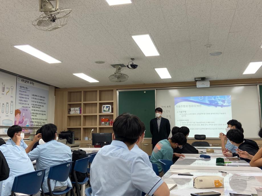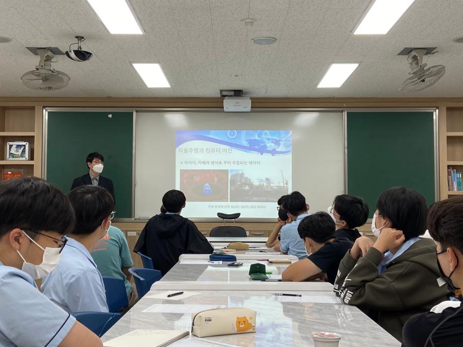 본문 시작 홈으로 학부활동 학부소개 학부활동 교육과정 커뮤니티 학부생활 입학안내 홈페이지가이드 학부갤러리 학부행사 학생회 활동 전공 동아리 학부갤러리 학부갤러리 페이스북 트위터 프린트 충북진로교육원 주관 찾아가는 고교특강 '세명고등학교' 특강 컴퓨터학부 2863 2022-05-23 우리 컴퓨터학부에서 충북진로교육원이 주관하는 찾아가는 고교특강을 세명고등학교를 대상으로 진행하였습니다. 주제는 최근 많은 관심을 받고 있는 '인공지능 기술과 미래'에 관한 주제로 세부 주제는 자율주행과 컴퓨터비젼으로 고등학생들이 컴퓨터 분야에 흥미를 가질 수 있는 내용을 진행되었습니다. 장소: 세명고등학교 일시: 2022년 5월 19일 19:00~20:30 목록 이전컴퓨터학부 학과체험 프로그램 고등학생 대상 특강 진행 완료 다음 2022학년도 컴퓨터학부 농촌봉사활동(수산면 수곡리) 담당부서 : 컴퓨터학부 담당자 : - 연락처 : 043-649-1272 최종수정일 : 2024-10-26 만족도조사 만족도 조사 이 페이지에서 제공하는 정보에 대하여 만족하시나요? 매우만족 만족 보통 불만족 매우불만족