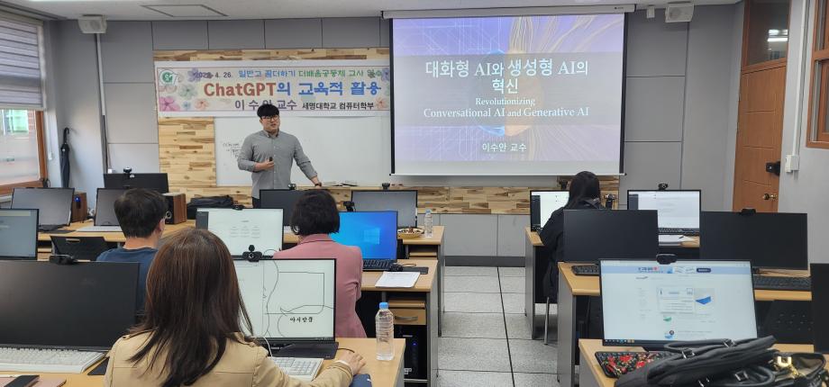 본문 시작 홈으로 학부활동 학부소개 학부활동 교육과정 커뮤니티 학부생활 입학안내 홈페이지가이드 학부갤러리 학부행사 학생회 활동 전공 동아리 학부갤러리 학부갤러리 페이스북 트위터 프린트 23년도 강원 춘천고 특강 "ChatGPT의 교육적 활용" 강연 컴퓨터학부 4308 2023-04-28 날짜: 23-04-26 행사: 2023학년도 춘천고등학교 ChatGPT 활용 특강 목록 이전23년도 1학기 중간고사 간식 이벤트 안내 다음 2023 청룡체전 먹거리 부스 담당부서 : 컴퓨터학부 담당자 : - 연락처 : 043-649-1272 최종수정일 : 2024-10-26 만족도조사 만족도 조사 이 페이지에서 제공하는 정보에 대하여 만족하시나요? 매우만족 만족 보통 불만족 매우불만족