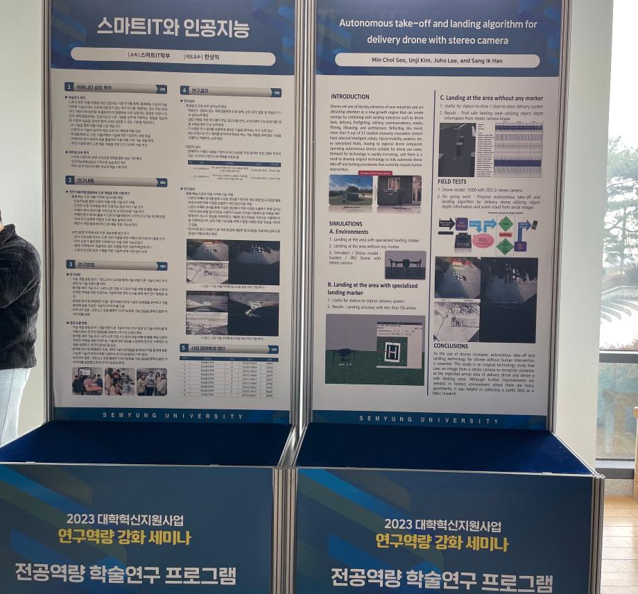 드론의 완전자율비행을 위한 기술연구를 진행중이며 3학년과 4학년으로 나뉘어 크게 두가지의 연구를 진행중입니다