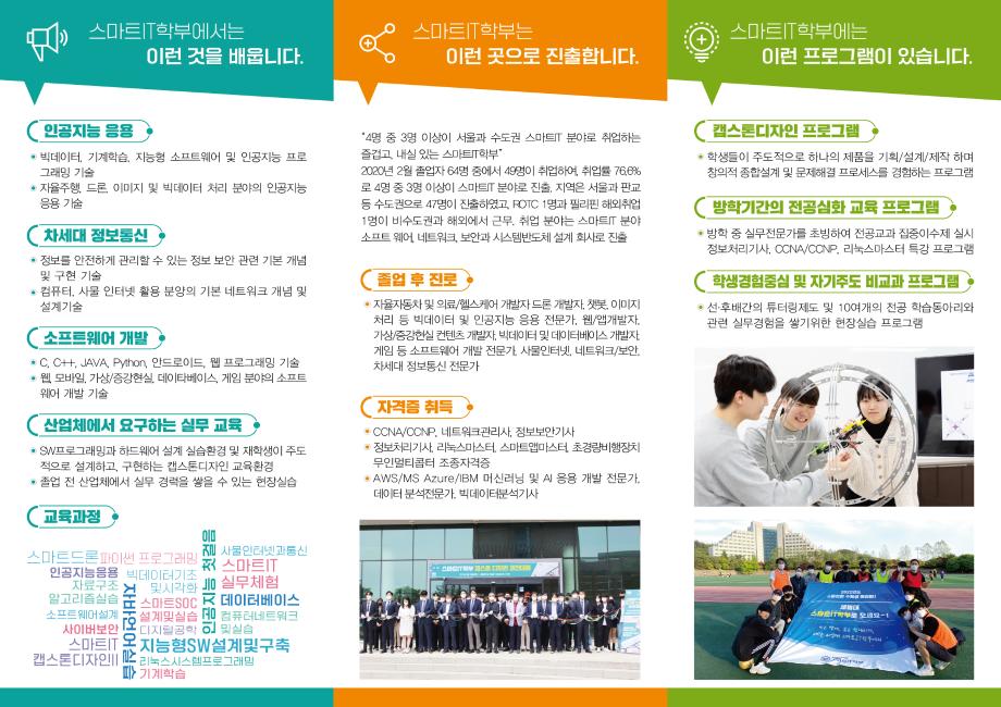 본문 시작 홈으로 SMIT 소식 SMIT 소개 SMIT 교육 SMIT 취업 SMIT 소식 SMIT 입학 홈페이지가이드 갤러리 공지사항 갤러리 경진대회 동아리 갤러리 페이스북 트위터 프린트 2022학년도 스마트IT학부 리플렛 정보통신학부 4627 2021-07-12 발은 땅에, 꿈은 원대하게, 준비는 세명대 스마트IT학부에서. 목록 이전2021학년도 스마트IT학부 캡스톤디자인 경진대회 다음 1차 제천제일고등학교 "드론 코딩하고 비행 체험하기" 담당부서 : 스마트IT학부 담당자 : - 연락처 : 043-649-1275 최종수정일 : 2024-10-26 만족도조사 만족도 조사 이 페이지에서 제공하는 정보에 대하여 만족하시나요? 매우만족 만족 보통 불만족 매우불만족