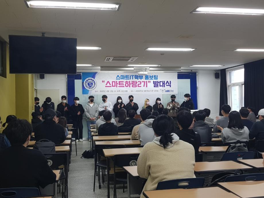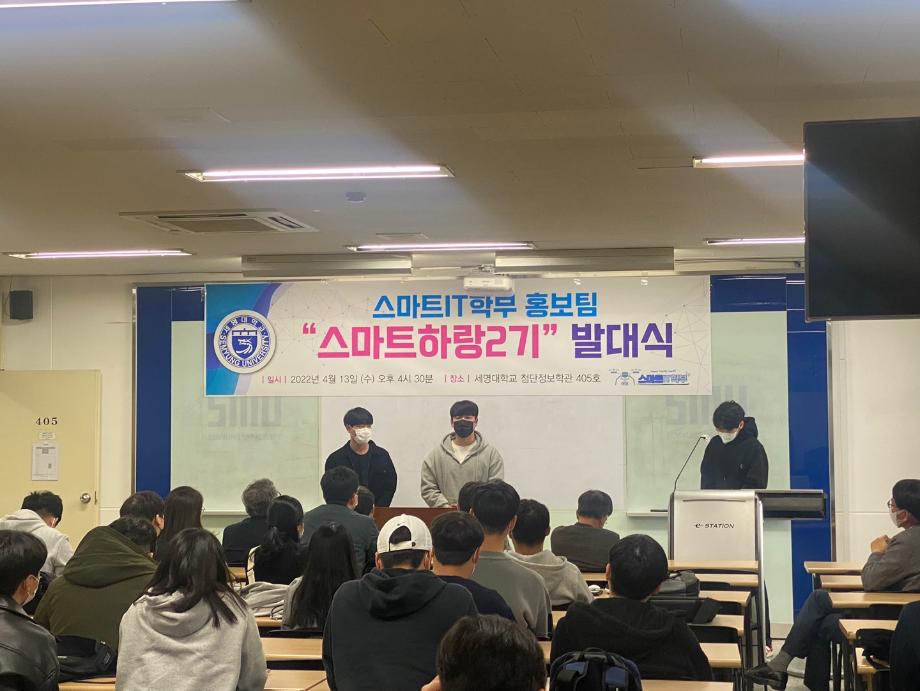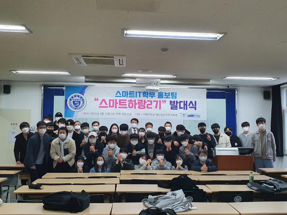 본문 시작 홈으로 SMIT 소식 SMIT 소개 SMIT 교육 SMIT 취업 SMIT 소식 SMIT 입학 홈페이지가이드 갤러리 공지사항 갤러리 경진대회 동아리 갤러리 페이스북 트위터 프린트 스마트IT학부 홍보팀 '스마트하랑2기' 발대식 스마트IT학부 2650 2022-04-13 4월13일(수) 오후 4시30분에 첨단정보학관과 벚꽃이 화사한 교정에서 1학년 43명과 학부교수님, 학회 임원들이 참가해서, 홍보팀 ‘2기 스마트하랑’ 발대식과 함께 2022년도 학부 홍보 활동을 본격적으로 시작하였다. 스마트하랑은 ‘스마트’와 [함께 높이 날다] 뜻인 ‘하랑’의 합성어로, 세명대 스마트IT 학부를 세상에 널리 알리기 위한 사명감으로, 작년부터 학부 SNS 중심으로 홍보활동을 진행하고 있다. 목록 이전제천고 자연과학 아카데미 1차 진행 다음 스마트IT학부 제천중학교 '가보자구' 과학축제 행사 참여 담당부서 : 스마트IT학부 담당자 : - 연락처 : 043-649-1275 최종수정일 : 2024-10-26 만족도조사 만족도 조사 이 페이지에서 제공하는 정보에 대하여 만족하시나요? 매우만족 만족 보통 불만족 매우불만족