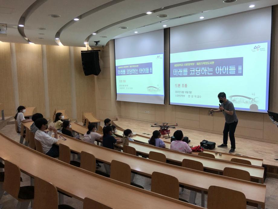 스마트IT학부는 2022년 09월18일 일요일에 세명대학교 학술관102호 및 1층로비에서 제천 기적의 도서관과 협력하여 ‘미래를 코딩하는 아이들Ⅱ’ 라는 주제로 행사를 개최했다.