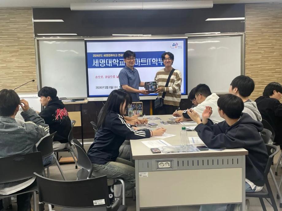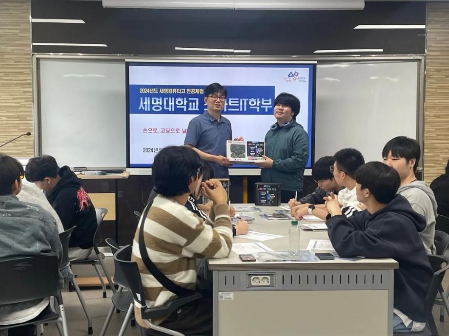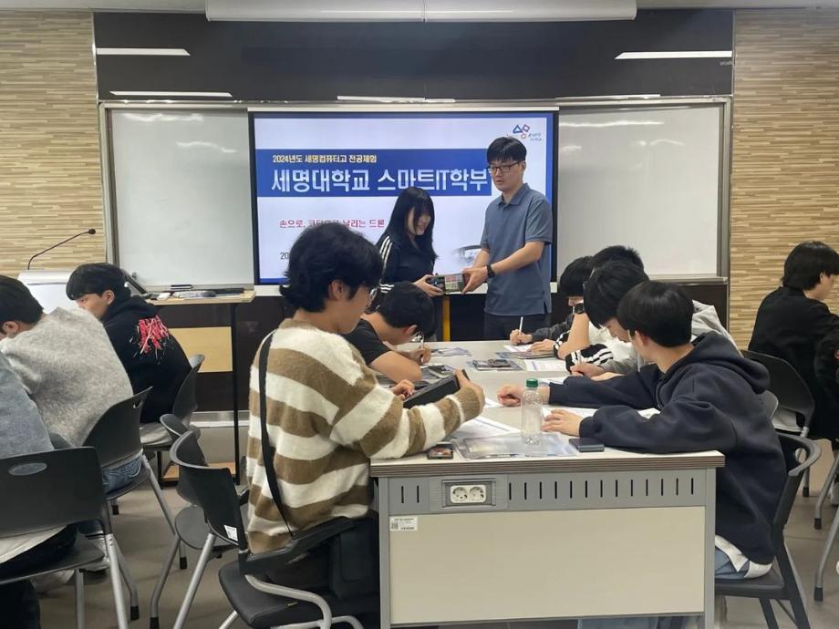 본문 시작 홈으로 SMIT 소식 SMIT 소개 SMIT 교육 SMIT 취업 SMIT 소식 SMIT 입학 홈페이지가이드 갤러리 공지사항 갤러리 경진대회 동아리 갤러리 페이스북 트위터 프린트 세명컴퓨터고등학교 전공 특강 시행 스마트IT학부 2864 2024-05-09 안녕하세요 세명대학교 스마트IT학부입니다🤗 2024년 5월 8일에 세명컴퓨터고등학교 학생들의 전공 체험 활동을 진행하였습니다. 세명대학교의 자매학교인 세명컴퓨터고등학교의 전공 체험 학습을 위해 스마트IT학부는 드론 축구와 드론 레이스를 진행했습니다. 게임의 우승자와 열심히 참여한 학생들에게 드론과 소정의 상품을 증정하였습니다. 목록 이전2024학년도 스마트IT학부 MT 다음 2024 청룡체전 담당부서 : 스마트IT학부 담당자 : - 연락처 : 043-649-1275 최종수정일 : 2024-10-26 만족도조사 만족도 조사 이 페이지에서 제공하는 정보에 대하여 만족하시나요? 매우만족 만족 보통 불만족 매우불만족