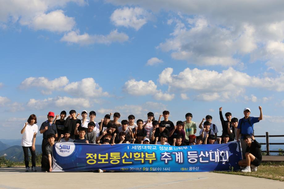 본문 시작 홈으로 SMIT 소식 SMIT 소개 SMIT 교육 SMIT 취업 SMIT 소식 SMIT 입학 홈페이지가이드 갤러리 공지사항 갤러리 경진대회 동아리 갤러리 페이스북 트위터 프린트 2018학년도 정보통신학부 용두산 등산 정보통신학부 7388 2018-09-27 정보통신학부에서는 2018년 09월 05일 18학번 신입생들을 대상으로 용두산 등산을 실시하였다. 이날 참가한 신입생들은 즐거운 마음으로 산행하면서 용두산의 아름다움을 체험할 수 있었다. 이번 용두산 등산을 계기로 신입생들의 유대감이 더욱 더 향상 되었고 몸과 마음을 단련할 수 있는 좋은 계기가 되었다. 목록 이전2017학년도 후기 학위수여식 개최 다음 2018학년도 IT엔지니어링대학 임직원 취업특강 담당부서 : 스마트IT학부 담당자 : - 연락처 : 043-649-1275 최종수정일 : 2024-10-26 만족도조사 만족도 조사 이 페이지에서 제공하는 정보에 대하여 만족하시나요? 매우만족 만족 보통 불만족 매우불만족