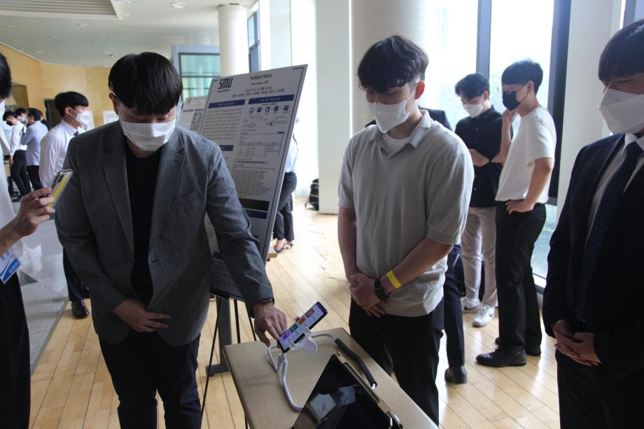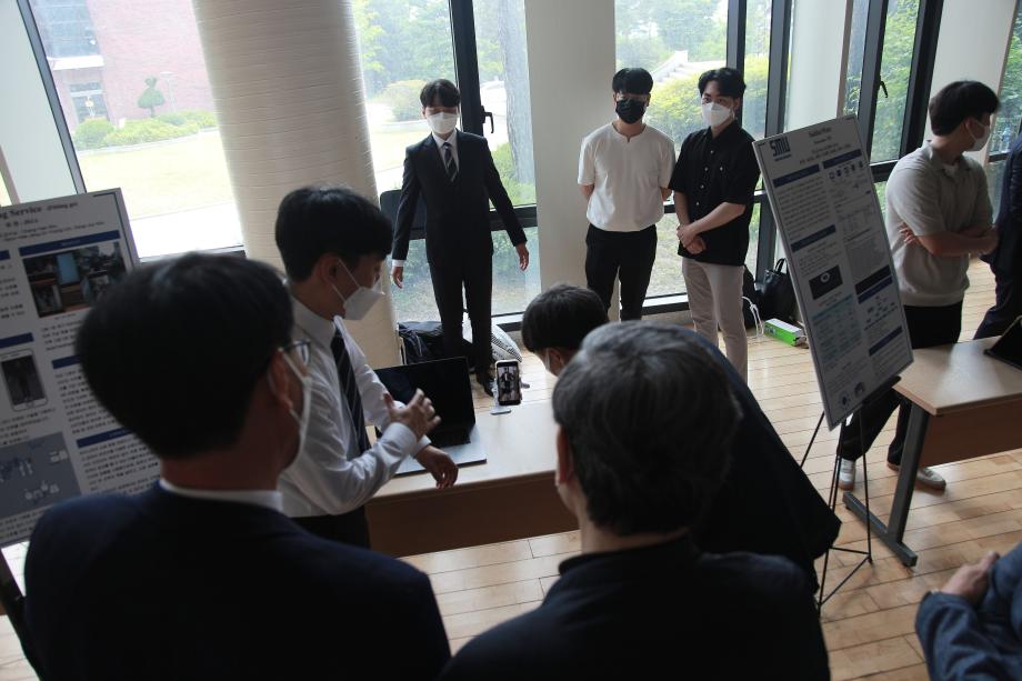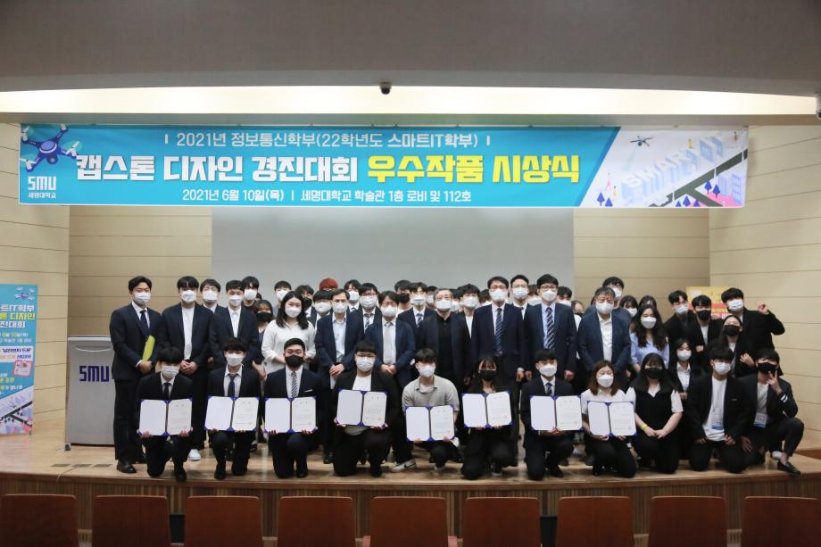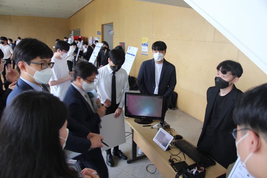 본문 시작 홈으로 SMIT 소식 SMIT 소개 SMIT 교육 SMIT 취업 SMIT 소식 SMIT 입학 홈페이지가이드 갤러리 공지사항 갤러리 경진대회 동아리 갤러리 페이스북 트위터 프린트 2021학년도 스마트IT학부 캡스톤디자인 경진대회 정보통신학부 4585 2021-06-10 2021년 06월 10일 정보통신학부에서는 캡스톤디자인 경진대회를 학술관1층 로비에서 진행하였습니다. 4학년 재학생들이 4년동안 학습한 지식의 미무리 단계로서 1년 동안 준비한 작품을 교수님들께 설명과 함께 시연하고 교수님들의 평가 후 우수작품을 선정하여 학술관112호에서 시상하였다. 캡스톤디자인 결과발표회를 통해서 재학생들은 산업현장에서 진행해야 하는 프로젝트 업무를 간접적으로 느낄 수 있는 뜻 깊은 자리 였습니다. 목록 이전스마트IT학부 홍보팀 “스마트하랑”발대식 다음 2022학년도 스마트IT학부 리플렛 담당부서 : 스마트IT학부 담당자 : - 연락처 : 043-649-1275 최종수정일 : 2024-10-26 만족도조사 만족도 조사 이 페이지에서 제공하는 정보에 대하여 만족하시나요? 매우만족 만족 보통 불만족 매우불만족