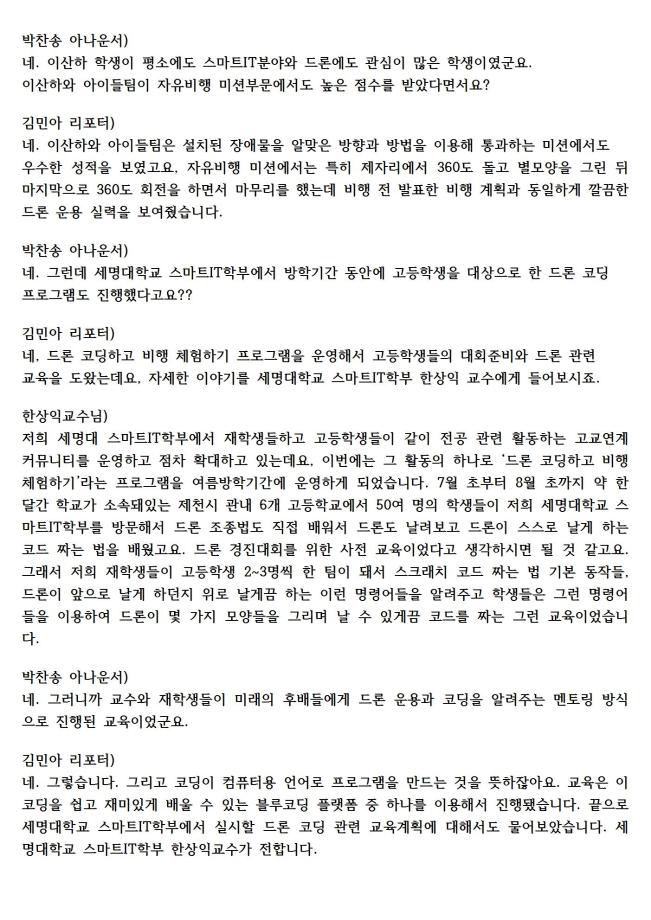본문 시작 홈으로 SMIT 소식 SMIT 소개 SMIT 교육 SMIT 취업 SMIT 소식 SMIT 입학 홈페이지가이드 갤러리 공지사항 갤러리 경진대회 동아리 갤러리 페이스북 트위터 프린트 21.08.30(월) SM 스마트 드론 레이싱 경진대회 관련 라디오 출연 스마트IT학부 3786 2021-09-23 지난 8월19일(목)에 진행한 "SM 스마트 드론 레이싱 경진대회"와 관련하여 최우수상을 수상한 충주상업고 학생과 스마트IT학부 한상익교수님이 출연하여 수상소감대회 및 준비과정과 진행 방식등을 설명하였다. 목록 이전2021. SM 스마트 드론 레이싱 경진대회 기사 다음 2021.09.03(금) 스마트IT학부 한상익교수님 라디오 출연 담당부서 : 스마트IT학부 담당자 : - 연락처 : 043-649-1275 최종수정일 : 2024-10-26 만족도조사 만족도 조사 이 페이지에서 제공하는 정보에 대하여 만족하시나요? 매우만족 만족 보통 불만족 매우불만족