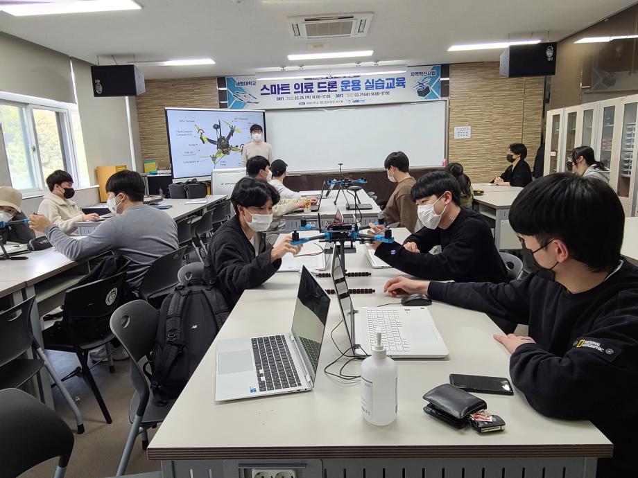 본문 시작 홈으로 SMIT 소식 SMIT 소개 SMIT 교육 SMIT 취업 SMIT 소식 SMIT 입학 홈페이지가이드 갤러리 공지사항 갤러리 경진대회 동아리 갤러리 페이스북 트위터 프린트 4차산업 실무역량 강화 스마트 의료 드론 운용 실습교육 진행 스마트IT학부 2646 2022-03-25 스마트IT학부에서는 3월 24일, 25일 14시~17시까지 이틀에 걸쳐 첨단정보학관 407호에서 4차산업 실무역량 강화를 위한 스마트 의료 드론 운용 실습교육을 진행하였다. 학부 재학생 약 20명이 참여하여 의료 드론에 관찬 기초적인 강의를 듣고, 직접 드론을 만들어 코딩으로 드론을 조종하는 방법까지 체험하였다. 목록 이전스마트IT학부_신입생 대환영 드론 경진대회 다음 [스마트IT학부] 지역고교대상 프리칼리지 프로그램 시행 담당부서 : 스마트IT학부 담당자 : - 연락처 : 043-649-1275 최종수정일 : 2024-10-26 만족도조사 만족도 조사 이 페이지에서 제공하는 정보에 대하여 만족하시나요? 매우만족 만족 보통 불만족 매우불만족