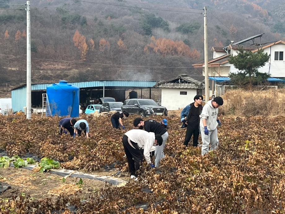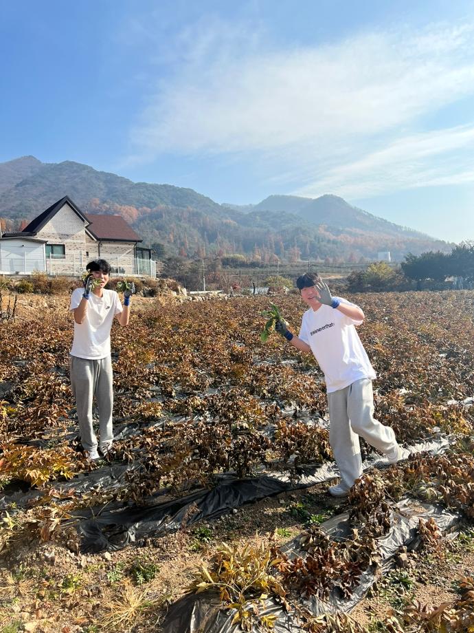 본문 시작 홈으로 SMIT 소식 SMIT 소개 SMIT 교육 SMIT 취업 SMIT 소식 SMIT 입학 홈페이지가이드 갤러리 공지사항 갤러리 경진대회 동아리 갤러리 페이스북 트위터 프린트 스마트IT학부 농활활동 시행 스마트IT학부 4794 2022-11-12 스마트IT학부는 2022.11.12(토)에 재학생 봉사활동을 다녀왔다. 제천시 백운면에서 활동이 이루어졌으며, 작약밭에서 잡초를 재거하는 활동을 하였다. 재학생 31명과 권혁민 교수님이 참여했다. 재학생들은 협동심을 발휘하여 농가 일손을 도우며 봉사의 의미를 새길 수 있었으며, 친구들과의 우정을 쌓을 수 있었다. 목록 이전스마트IT학부 학부MT개최 다음 스마트IT학부 'I&U프로그램' 시행 담당부서 : 스마트IT학부 담당자 : - 연락처 : 043-649-1275 최종수정일 : 2024-10-26 만족도조사 만족도 조사 이 페이지에서 제공하는 정보에 대하여 만족하시나요? 매우만족 만족 보통 불만족 매우불만족