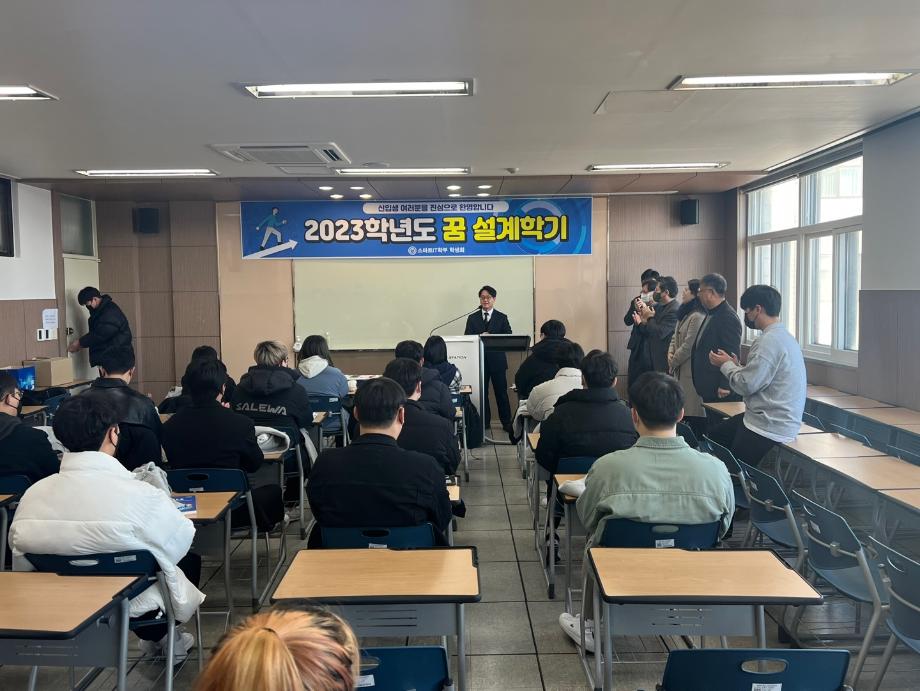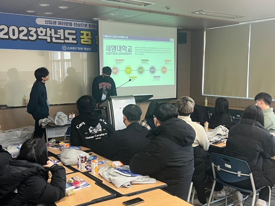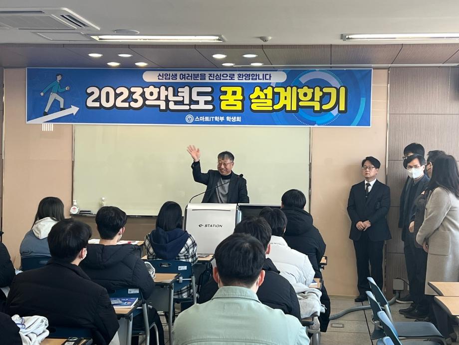 본문 시작 홈으로 SMIT 소식 SMIT 소개 SMIT 교육 SMIT 취업 SMIT 소식 SMIT 입학 홈페이지가이드 갤러리 공지사항 갤러리 경진대회 동아리 갤러리 페이스북 트위터 프린트 2023학년도 꿈 설계학기 1일차 스마트IT학부 7075 2023-02-20 스마트IT학부는 세명대학교 전체 신입생을 대상으로 하는 "꿈 설계학기"를 2023년 2월20일부터 22일까지 진행한다. 1일차는 첨단정보학관 321호에서 교수님 및 학회소개, 신입생들 자기소개, 졸업생 및 재학생 환영 영상 시청 등의 프로그램으로 이루어졌다. '꿈 설계학기'를 통해 신입생들의 학교에 대한 소속감이 고취될 수 있던 유익한 시간이었다. 목록 이전스마트IT학부 전기 학위수여식 다음 2023학년도 꿈 설계학기 2일차 담당부서 : 스마트IT학부 담당자 : - 연락처 : 043-649-1275 최종수정일 : 2024-10-26 만족도조사 만족도 조사 이 페이지에서 제공하는 정보에 대하여 만족하시나요? 매우만족 만족 보통 불만족 매우불만족