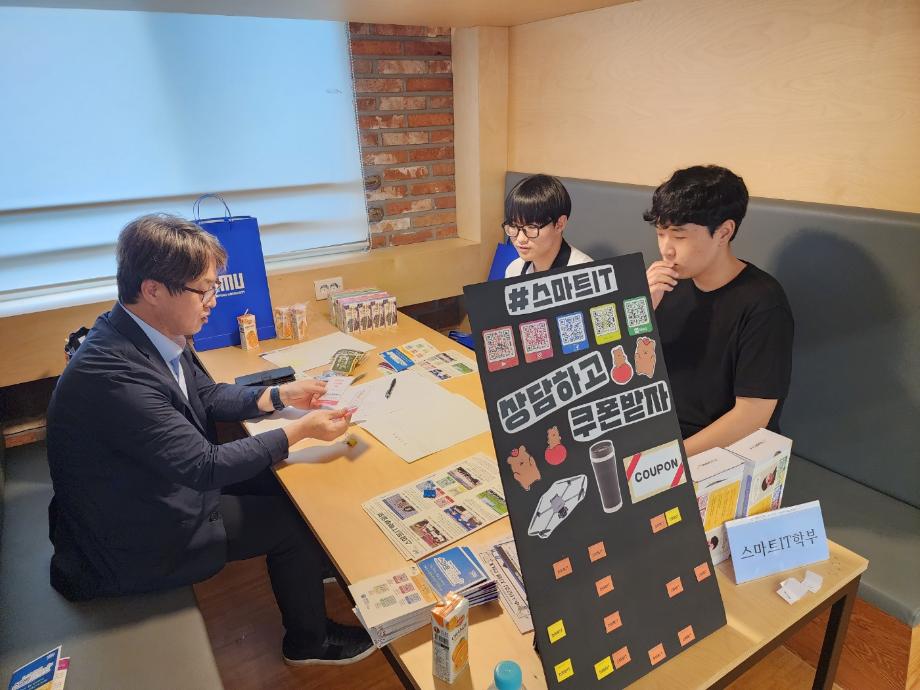 본문 시작 홈으로 SMIT 소식 SMIT 소개 SMIT 교육 SMIT 취업 SMIT 소식 SMIT 입학 홈페이지가이드 갤러리 공지사항 갤러리 경진대회 동아리 갤러리 페이스북 트위터 프린트 세명고등학교 입시박람회 시행 스마트IT학부 5185 2023-07-17 스마트IT학부는 2023.07.13(목) 세명고등학교에서 진행하는 세명고 박람회에 참가하였다. 학생들이 자유롭게 입시상담 부스에 방문하여 스마트IT학부 입시 등에 대하여 조면균 교수님과 상담을 하였다. 상담을 받은 학생에 한하여 상품 경품을 진행하였다. 세명고 학생들에게 입시와 취업 전망 등에 대해 설명하는 유익한 시간이었다. 목록 이전스마트IT학부 제천제일고 내비게이션 특강 시행 다음 한상익 교수님 '산학협력단 감사의 글' 수여 담당부서 : 스마트IT학부 담당자 : - 연락처 : 043-649-1275 최종수정일 : 2024-10-26 만족도조사 만족도 조사 이 페이지에서 제공하는 정보에 대하여 만족하시나요? 매우만족 만족 보통 불만족 매우불만족