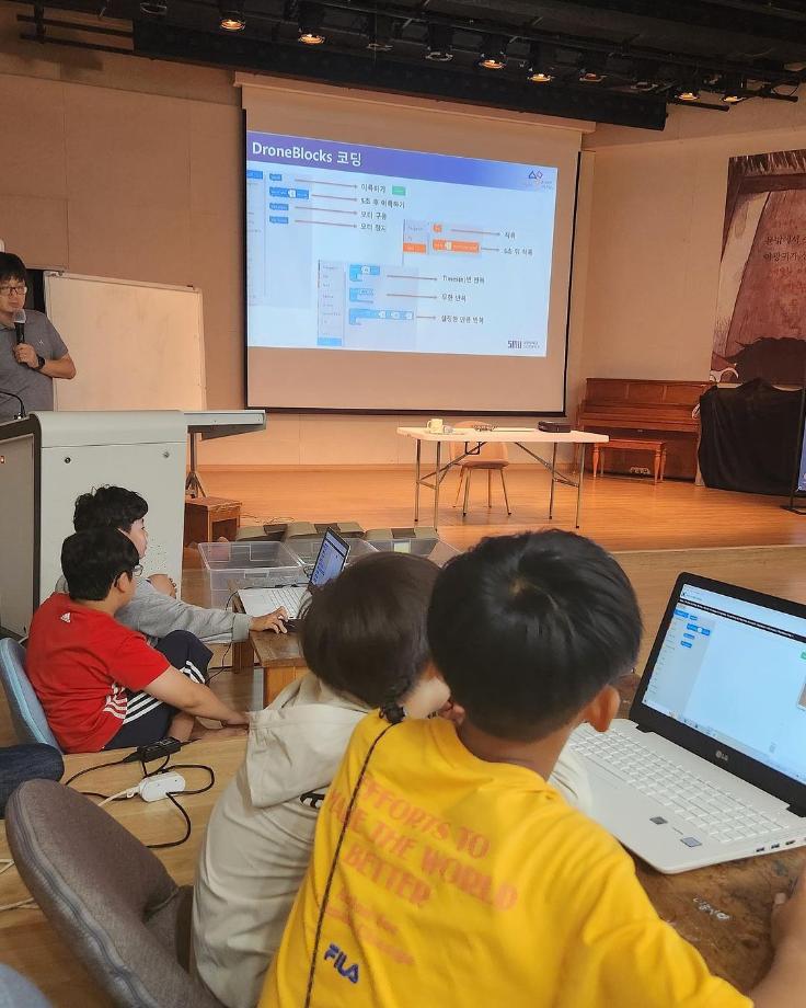 본문 시작 홈으로 SMIT 소식 SMIT 소개 SMIT 교육 SMIT 취업 SMIT 소식 SMIT 입학 홈페이지가이드 갤러리 공지사항 갤러리 경진대회 동아리 갤러리 페이스북 트위터 프린트 스마트IT학부 제천 기적의 도서관 행사 2일차 스마트IT학부 6434 2023-09-18 2023.09.14.목요일 세명대학교 스마트 IT학부는 기적의 도서관에서 초등학생들을 대상으로한 드론 2주차 수업에 다녀왔습니다.❤️ 2추자 수업으로는 1주차에 조종하였던 텔로 드론과 DroneBlocks를 사용하여 코딩 활동을 하였습니다.📚 미션으로 제시된 모양데로 코딩을 하고 학생들이 원하는 방식으로 직접 코딩하여 재미있는 활동을 하였습니다.🫶 학생들의 적극적인 참여에 감사드립니다.👍🫶👍 목록 이전스마트IT학부 제천기적의 도서관 행사 1주차 다음 스마트IT학부 제천 기적의 도서관 행사 3주차 담당부서 : 스마트IT학부 담당자 : - 연락처 : 043-649-1275 최종수정일 : 2024-10-26 만족도조사 만족도 조사 이 페이지에서 제공하는 정보에 대하여 만족하시나요? 매우만족 만족 보통 불만족 매우불만족