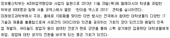 본문 시작 홈으로 SMIT 소식 SMIT 소개 SMIT 교육 SMIT 취업 SMIT 소식 SMIT 입학 홈페이지가이드 갤러리 공지사항 갤러리 경진대회 동아리 갤러리 페이스북 트위터 프린트 정보통신학부, 용두산정화활동 및 체육대회실시 오선진 7328 2014-04-15 정보통신학부, 용두산정화활동 및 체육대회실시 목록 이전정보통신학부, 취업박람회 견학 다음 정보통신학부, 2014학년도 졸업작품중간발표회 개최 담당부서 : 스마트IT학부 담당자 : - 연락처 : 043-649-1275 최종수정일 : 2024-10-26 만족도조사 만족도 조사 이 페이지에서 제공하는 정보에 대하여 만족하시나요? 매우만족 만족 보통 불만족 매우불만족
