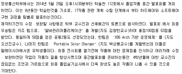 본문 시작 홈으로 SMIT 소식 SMIT 소개 SMIT 교육 SMIT 취업 SMIT 소식 SMIT 입학 홈페이지가이드 갤러리 공지사항 갤러리 경진대회 동아리 갤러리 페이스북 트위터 프린트 정보통신학부, 글로벌 MT 개최 오선진 7476 2014-10-02 2014년 9월 19일 - 20일춪주 켄싱톤 리조트 목록 이전정보통신학부, 2014학년도 졸업작품중간발표회 개최 다음 정보통신학부 졸업작품 전시회 및 학부 특성화 사업 설명회 개최 담당부서 : 스마트IT학부 담당자 : - 연락처 : 043-649-1275 최종수정일 : 2024-10-26 만족도조사 만족도 조사 이 페이지에서 제공하는 정보에 대하여 만족하시나요? 매우만족 만족 보통 불만족 매우불만족
