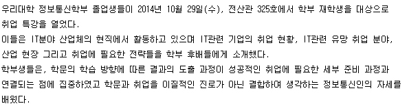 본문 시작 홈으로 SMIT 소식 SMIT 소개 SMIT 교육 SMIT 취업 SMIT 소식 SMIT 입학 홈페이지가이드 갤러리 공지사항 갤러리 경진대회 동아리 갤러리 페이스북 트위터 프린트 정보통신학부, 월악산 국립공원 정화활동 실시 오선진 7150 2014-11-06 정보통신학부, 월악산 국립공원 정화활동 실시 목록 이전정보통신학부, 취업 전략을 위한 졸업생 특강 개최 다음 한방-의료ICT융합사업단 튜터링 오리엔테이션 진행 담당부서 : 스마트IT학부 담당자 : - 연락처 : 043-649-1275 최종수정일 : 2024-10-26 만족도조사 만족도 조사 이 페이지에서 제공하는 정보에 대하여 만족하시나요? 매우만족 만족 보통 불만족 매우불만족