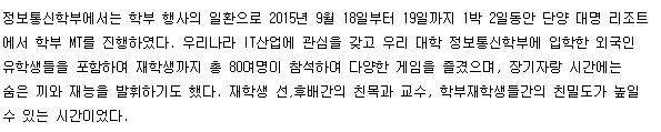 본문 시작 홈으로 SMIT 소식 SMIT 소개 SMIT 교육 SMIT 취업 SMIT 소식 SMIT 입학 홈페이지가이드 갤러리 공지사항 갤러리 경진대회 동아리 갤러리 페이스북 트위터 프린트 한방-의료ICT 융합사업단, 캡스톤 디자인 경진대회 실시 관리자 6293 2015-09-30 한방-의료ICT 융합사업단, 캡스톤 디자인 경진대회 실시 목록 이전정보통신학부, "글로벌 정통 MT" 개최 다음 한방-의료ICT 융합사업단, 융합전공 동아리 오리엔테이션 진행 담당부서 : 스마트IT학부 담당자 : - 연락처 : 043-649-1275 최종수정일 : 2024-10-26 만족도조사 만족도 조사 이 페이지에서 제공하는 정보에 대하여 만족하시나요? 매우만족 만족 보통 불만족 매우불만족