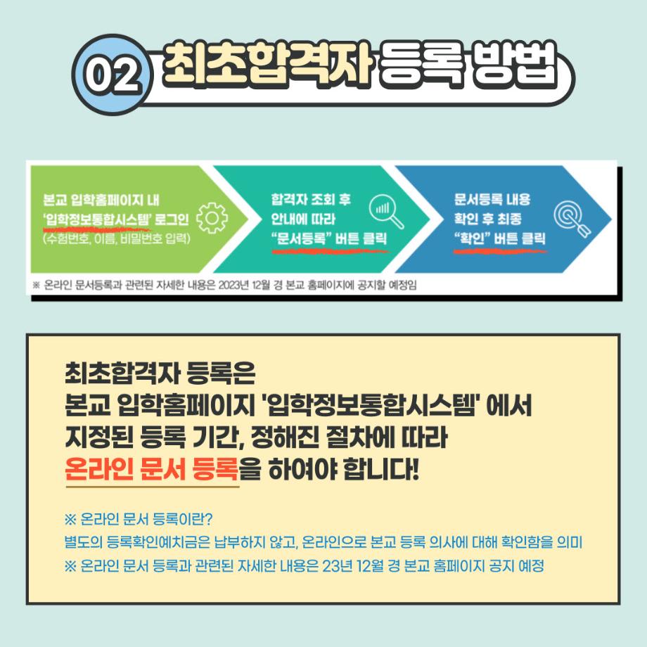 본문 시작 홈으로 SMIT 소식 SMIT 소개 SMIT 교육 SMIT 취업 SMIT 소식 SMIT 입학 홈페이지가이드 갤러리 공지사항 갤러리 경진대회 동아리 갤러리 페이스북 트위터 프린트 📌 잊지 말고! 수시 최초합격자 등록하자!! 스마트IT학부 3868 2023-11-27 📌 잊지 말고! 수시 최초합격자 등록하자!! 2024학년도 수시 최초합격자 등록 기간 안내입니다👍 ✔12월 18일(월)부터 21일(목) 17:00✔까지, 온라인 문서 등록! ✨신입생 전원 장학금 지급까지?!✨ 잊지 말고 등록하세요~~! 목록 이전스마트IT학부 E-Sports 대회 홍보 상담부스 진행! 다음 S-Boot Camp 정보처리기사 실기 특강 담당부서 : 스마트IT학부 담당자 : - 연락처 : 043-649-1275 최종수정일 : 2024-10-26 만족도조사 만족도 조사 이 페이지에서 제공하는 정보에 대하여 만족하시나요? 매우만족 만족 보통 불만족 매우불만족
