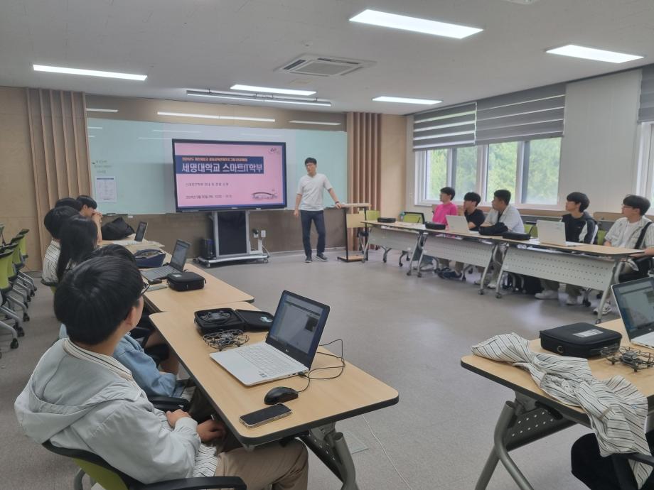 본문 시작 홈으로 SMIT 소식 SMIT 소개 SMIT 교육 SMIT 취업 SMIT 소식 SMIT 입학 홈페이지가이드 갤러리 공지사항 갤러리 경진대회 동아리 갤러리 페이스북 트위터 프린트 제천제일고 전공체험활동!! 스마트IT학부 2671 2024-06-03 안녕하세요 세명대학교 스마트IT학부입니다☺ 2024년 5월 30일에 제천제일고등학교 학생들의 전공 체험 활동을 진행하였습니다! 제일고등학교에서 온 학생들의 전공체험을 위해 코딩 및 드론 체험 진행했습니다. 잘 따라와준 학생들에게는 소정의 상품도 증정하였던 매우 열정적인 시간이었습니다!❤️🔥❤️🔥 함께한 친구들 모두 세명대에서 다시 만날 수 있길 바라요🤗 목록 이전2024 부트캠프 시행 다음 2024학년도 졸업작품 전시회 개최 담당부서 : 스마트IT학부 담당자 : - 연락처 : 043-649-1275 최종수정일 : 2024-10-26 만족도조사 만족도 조사 이 페이지에서 제공하는 정보에 대하여 만족하시나요? 매우만족 만족 보통 불만족 매우불만족