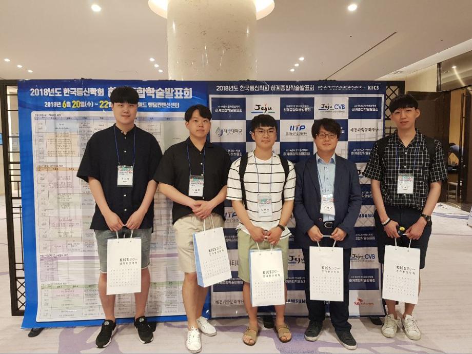 LINC+ IoT융합시스템학과 캡스톤디자인 'PM10:00'팀(지도교수 조면균 교수)은 6월 21일 제주 신화월드에서 개최된 국내 최대의 IT 학술대회 '2018 한국통신학회 하계종합학술발표회' 사물인터넷(IoT) 분야에서 '증강현실 코어를 이용한 현실공간과 가상공간의 연결통로 표현 방법'을 발표해 학술논문상을 수여받았습니다.