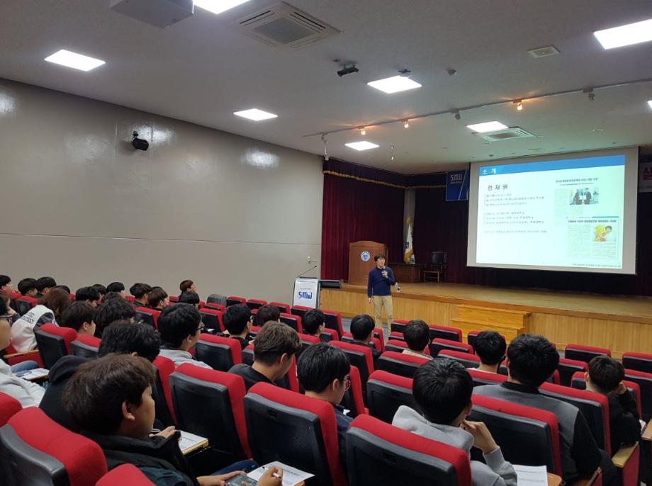 정보통신학부에서는 2018학년도 IT엔지니어링대학 졸업생 취업특강으로 10월 24일(수) (주)에너지코드 대표이사를 모시고 4차 산업시대의 취업준비 및 취업전략에 관한 특강을 진행하였다. 특강은 민송도서관 시청각실(107호)에서 진행되었으며 '4차 산업혁명시대의 융합형 인재로 성장하고 살아가는 법'을 주제로 진행되었다. 이 특강을 통해 재학생들은 취업준비에 필요한 견문을 넓힐 수 있었고 전문지식 및 현장실무능력의 중요성을 깨달을 수 있게 되었다.