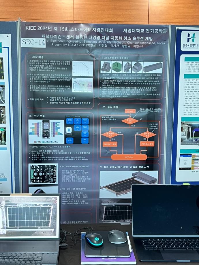 태양광 패널의 온도관리와 먼지제거를 위한 시스템은 현재도 존재하지만 본 작품은 온도센서와 먼지센서를 이용하여 필요한 시점에만 동작하도록 설계함으로써 불필요한 주기적 동작에 의한 전력 및 냉각수 소비를 줄이고, 필요한 경우 자주 동작함으로써 높은 발전효율을 유지하게 한 점이 주요 개발 요소였으며, 이에 대한 높은 평가로 인해 한국전기공사협회장이 선정하는 부문에서 금상을 수상하였다.