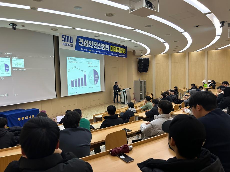 보건안전학과는 효성그룹 계열 진흥기업(주)에 김태균 대표이사님을 모시고 11월 27일(수) 학술관 제2컨퍼런스홀 102호실에서 임원 특강을 진행하였습니다. ‘건설안전산업의 미래지향성’ 이라는 주제로