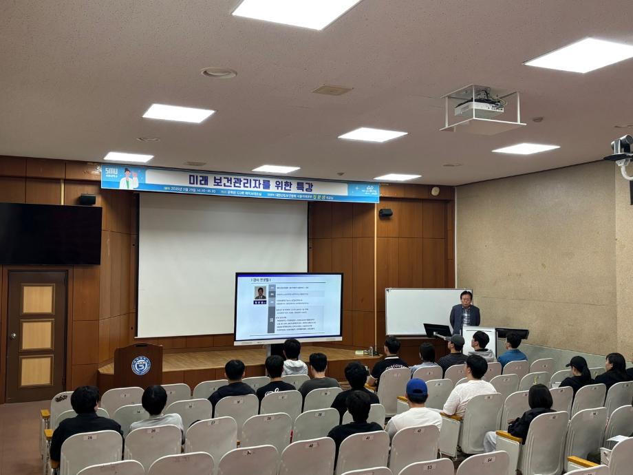 본문 시작 홈으로 커뮤니티 학과소개 진로 및 취업 교수소개 학과과정 커뮤니티 홈페이지가이드 포토갤러리 학과공지 학사일정 포토갤러리 학생회 학과영상 보건안전학과 인스타 보건안전학과 블로그 포토갤러리 페이스북 트위터 프린트 임원특강: 대한산업보건협회 정문생 국장님 보건안전학과 1133 2025-10-01 보건안전학과는 대한산업보건협회 정문생 국장님을 모시고 9월 29일(월) 학술관 제2컨퍼런스홀 102호실에서 임원 특강을 진행하였습니다. 목록 이전2025학년도 청룡체전 (9.24~9.26) 다음 보건안전학과 전공관련 현장견학 담당부서 : 보건안전학과 담당자 : - 연락처 : 043-649-1777 최종수정일 : 2024-10-26 만족도조사 만족도 조사 이 페이지에서 제공하는 정보에 대하여 만족하시나요? 매우만족 만족 보통 불만족 매우불만족