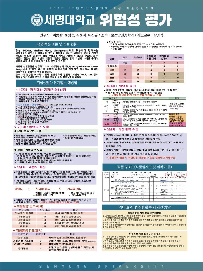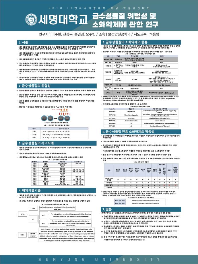 본문 시작 홈으로 커뮤니티 학과소개 진로 및 취업 교수소개 학과과정 커뮤니티 홈페이지가이드 포토갤러리 학과공지 학사일정 포토갤러리 학생회 학과영상 보건안전학과 인스타 보건안전학과 블로그 포토갤러리 페이스북 트위터 프린트 IT엔지니어링대학 학술발표대회 수상작 보건안전공학과 8050 2018-11-20 2018년 11월 1일 IT엔지니어링대학 학술발표대회 수상작 - 금 상 : Ethanol의 화재 · 폭발특성치의 측정 및 예측 양유환, 이원희, 김민정 - 장려상 : 금수성물질의 위험성과 소화약제에 관한 연구 이주헌,진상우,손민경,오수빈 -장려상 : 위험성 평가 이동한, 이진규, 윤병선, 김윤희 목록 이전제1회 IT엔지니어링대학 학술발표대회 다음 제 25회 세명대학교 보건안전공학과 학위수여식 담당부서 : 보건안전학과 담당자 : - 연락처 : 043-649-1777 최종수정일 : 2024-10-26 만족도조사 만족도 조사 이 페이지에서 제공하는 정보에 대하여 만족하시나요? 매우만족 만족 보통 불만족 매우불만족