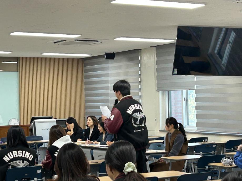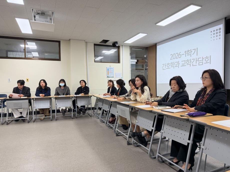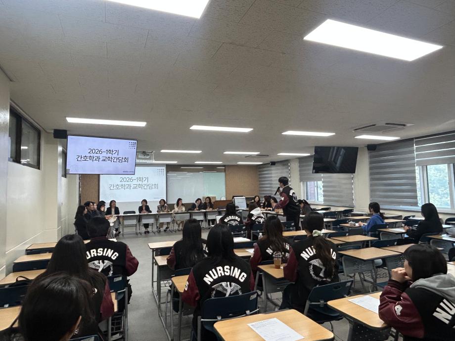 본문 시작 홈으로 커뮤니티 학과소개 교수소개 교육과정 학과소식 학과특성화 사업 커뮤니티 홈페이지가이드 포토갤러리 학사일정 포토갤러리 학생회 학과동아리 학과 취업정보 동창회 학과운영개선의견 발전기금 포토갤러리 페이스북 트위터 프린트 간호학과, 2026학년도 1학기 교학간담회 개최 간호학과 174 2026-04-09 간호학과는 4월 7일(화) 재학생, 교수진 및 행정실이 함께 참여하는 교학간담회를 개최하였다. 이번 간담회는 학습 환경 및 수업 운영, 학과 생활 전반에 대한 다양한 의견을 공유하고 소통하기 위해 마련되었다. 참석자들은 서로의 의견을 경청하며 학과 발전과 교육의 질 향상을 위한 방향에 대해 논의하는 시간을 가졌다. 간호학과는 앞으로도 구성원 간의 지속적인 소통을 통해 보다 나은 교육 환경을 조성해 나갈 예정이다. 목록 이전🧠세명대학교 간호학과, 3학년 대상 ‘치매파트너 교육’ 실시 담당부서 : 간호학과 담당자 : - 연락처 : 043-649-1357 최종수정일 : 2024-10-26 만족도조사 만족도 조사 이 페이지에서 제공하는 정보에 대하여 만족하시나요? 매우만족 만족 보통 불만족 매우불만족