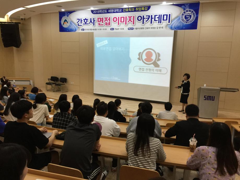 본문 시작 홈으로 커뮤니티 학과소개 교수소개 교육과정 학과소식 학과특성화 사업 커뮤니티 홈페이지가이드 포토갤러리 학사일정 포토갤러리 학생회 학과동아리 학과 취업정보 동창회 학과운영개선의견 발전기금 포토갤러리 페이스북 트위터 프린트 2018학년도 간호사 면접 이미지 아카데미 간호학과 7103 2018-06-04 2018학년도 간호사 면접 이미지 아카데미 일시 : 2018년 6월 4일 (월) 장소 : 학술관 402호 내용 : 간호학과 4학년 재학생들을 대상으로 면접 노하우 강의와 실전 대비 모의면접 진행. 목록 이전2018학년도 꿈 설계학기 다음 2018학년도 간호학과 핵심술기 담당부서 : 간호학과 담당자 : - 연락처 : 043-649-1357 최종수정일 : 2024-10-26 만족도조사 만족도 조사 이 페이지에서 제공하는 정보에 대하여 만족하시나요? 매우만족 만족 보통 불만족 매우불만족