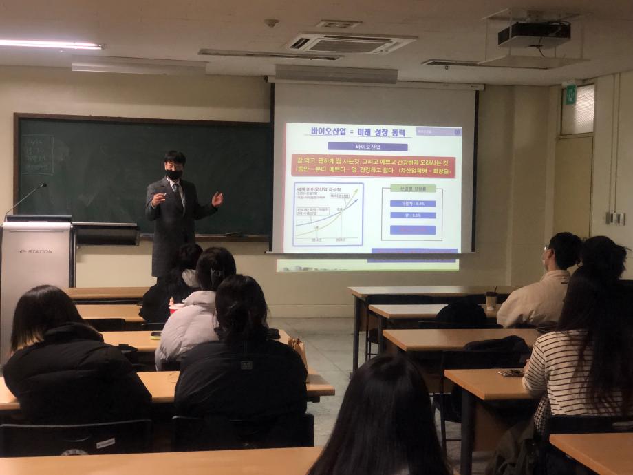 본문 시작 홈으로 커뮤니티 학과소개 학과과정 대학원 커뮤니티 연구동아리 홈페이지가이드 포토갤러리 학과공지 채용정보 학과일정 포토갤러리 유튜브 인스타그램 취업현황 학생회 조직도 졸업생 숏터뷰 포토갤러리 페이스북 트위터 프린트 [화장품산업실무체험] 김수진박사 학술특강 화장품뷰티학부 3644 2022-12-12 안녕하세요 화장품학과입니다! 우리학과 [화장품산업실무체험] 강의에서 학술특강을 진행하였는데요 :) '인트론바이오'에서 근무중이신 김수진 박사님께서 진행해 주셨습니다 ~ 바이오 시장에 대해 전반적으로 이해하는 시간을 가지고, 시장지향적인 마케팅적 사고로 전환하여 화장품분야를 다양한 관점에서 이해하는 시간을 가졌습니다 학생들에게 창의적으로 사고할수 있는 방법에 대해 강의해 주신 김수진 박사님께 감사의 말씀 전합니다 :) 목록 이전화장품학과 : 2022 캡스톤디자인 수상하다! 다음 2022년도 2학기 기말고사 시행 담당부서 : 바이오코스메틱학과 담당자 : - 연락처 : 043-649-1638 최종수정일 : 2024-10-26 만족도조사 만족도 조사 이 페이지에서 제공하는 정보에 대하여 만족하시나요? 매우만족 만족 보통 불만족 매우불만족