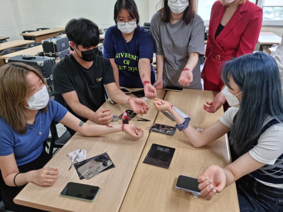 본문 시작 홈으로 커뮤니티 학과소개 학과과정 대학원 커뮤니티 연구동아리 홈페이지가이드 포토갤러리 학과공지 채용정보 학과일정 포토갤러리 유튜브 인스타그램 취업현황 학생회 조직도 졸업생 숏터뷰 포토갤러리 페이스북 트위터 프린트 [뷰티케어학] 메이크업 특강 진행 화장품뷰티학부 5023 2021-07-08 <메이크업 특강 1탄> 6월 22일 (화) 꾸안꾸 뷰티 커뮤니티(지도교수: 안채리 교수님) 학생들이 참여한 메이크업 특강이 진행되었습니다 좋아하는 연예인을 대상으로 일러스트레이션에 도전 ! 손목에 상처분장은 실제 같아 무서워 보여요 ⍨ 처음 배워본 특수분장 신기하기도 하고 재미있는 시간이었습니다 :) 목록 이전[F.P.L 동아리] 입욕제 만들기 다음 [아쿠아디테 동아리] 2021-1 하계방학 특별활동 담당부서 : 바이오코스메틱학과 담당자 : - 연락처 : 043-649-1638 최종수정일 : 2024-10-26 만족도조사 만족도 조사 이 페이지에서 제공하는 정보에 대하여 만족하시나요? 매우만족 만족 보통 불만족 매우불만족