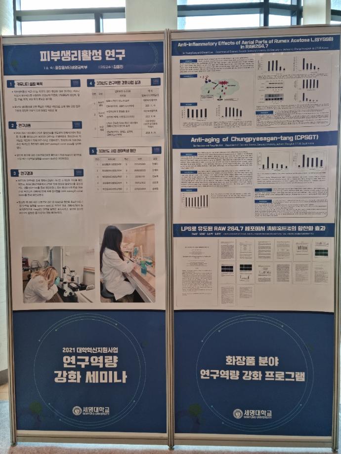 본문 시작 홈으로 커뮤니티 학과소개 학과과정 대학원 커뮤니티 연구동아리 홈페이지가이드 포토갤러리 학과공지 채용정보 학과일정 포토갤러리 유튜브 인스타그램 취업현황 학생회 조직도 졸업생 숏터뷰 포토갤러리 페이스북 트위터 프린트 2021 대학혁신지원사업 연구역량 강화 프로그램 포스터 게시 화장품뷰티학부 3516 2021-12-02 학술관 1층 로비에 화장품분야 관련 연구역량강화 포스터가 게재되었습니다 :) 학부 관련 동아리에 관한 내용도 게재 되어있으니 자유롭게 방문하셔서 구경하고 가세요~ 목록 이전2021학년도 대학혁신지원사업 연구역량 강화 세미나 다음 2021학년도 캡스톤디자인 경진대회 입상_단오 팀 담당부서 : 바이오코스메틱학과 담당자 : - 연락처 : 043-649-1638 최종수정일 : 2024-10-26 만족도조사 만족도 조사 이 페이지에서 제공하는 정보에 대하여 만족하시나요? 매우만족 만족 보통 불만족 매우불만족