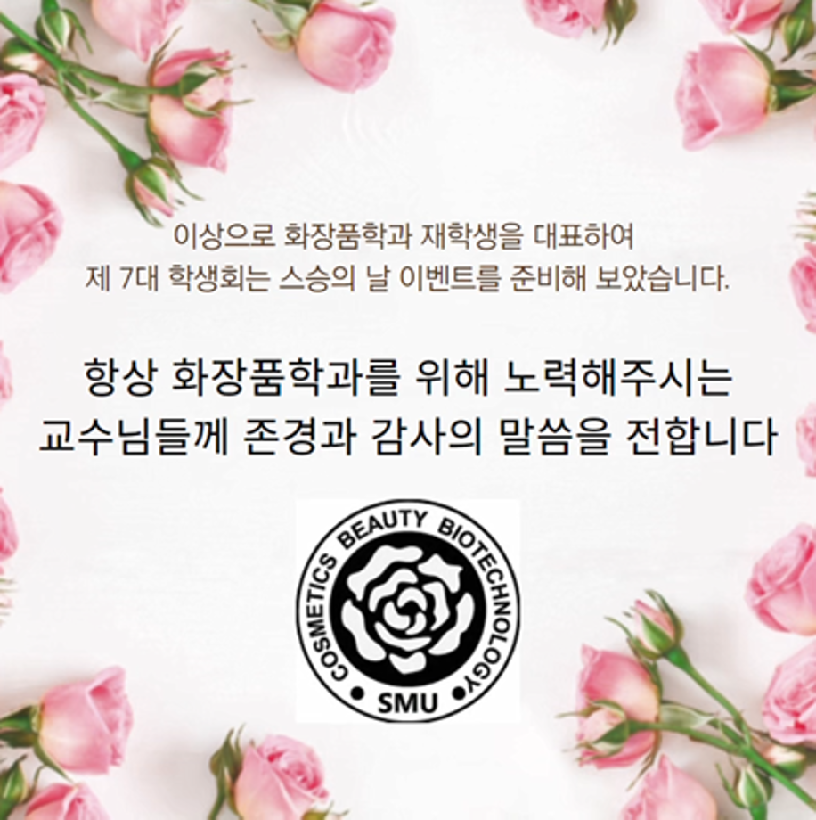 본문 시작 홈으로 커뮤니티 학과소개 학과과정 대학원 커뮤니티 연구동아리 홈페이지가이드 포토갤러리 학과공지 채용정보 학과일정 포토갤러리 유튜브 인스타그램 취업현황 학생회 조직도 졸업생 숏터뷰 포토갤러리 페이스북 트위터 프린트 스승의 날 감사 이벤트 화장품뷰티학부 2592 2022-05-12 화장품학과 7대 학생회가 재학생을 대표하여 스승의 날 이벤트를 준비했습니다. 목록 다음 2022 세명고등학교 과학실험 연구 프로그램 다음 2022-1학기 화장품뷰티학부 캡스톤디자인 발표회 담당부서 : 바이오코스메틱학과 담당자 : - 연락처 : 043-649-1638 최종수정일 : 2024-10-26 만족도조사 만족도 조사 이 페이지에서 제공하는 정보에 대하여 만족하시나요? 매우만족 만족 보통 불만족 매우불만족