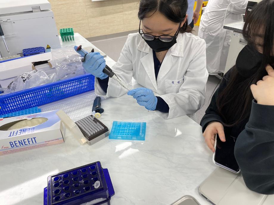 본문 시작 홈으로 커뮤니티 학과소개 학과과정 대학원 커뮤니티 연구동아리 홈페이지가이드 포토갤러리 학과공지 채용정보 학과일정 포토갤러리 유튜브 인스타그램 취업현황 학생회 조직도 졸업생 숏터뷰 포토갤러리 페이스북 트위터 프린트 2022 세명고등학교 과학실험 연구 프로그램(2차) 화장품뷰티학부 2921 2022-06-07 세명대학교 화장품학과(황형서 교수) 주관 2022 세명고등학교 과학 실험 특별프로그램 2차 활동이 5.27(금) 화장품학과 306호 실험실에서 있었습니다. 이날 세명고 학생들은 Central Dogma의 원리를 이해하고, Realtime RT-PCR 실험을 수행하였습니다. 세명고 학생들은 미래 생명공학 및 화장품과학자의 꿈을 미리 경험할 수 있는 뜻 깊은 시간이 되었습니다:) 목록 이전2022-1학기 화장품뷰티학부 캡스톤디자인 발표회 다음 화장품뷰티학부 화장품학 전공 주요 취업 현황 담당부서 : 바이오코스메틱학과 담당자 : - 연락처 : 043-649-1638 최종수정일 : 2024-10-26 만족도조사 만족도 조사 이 페이지에서 제공하는 정보에 대하여 만족하시나요? 매우만족 만족 보통 불만족 매우불만족