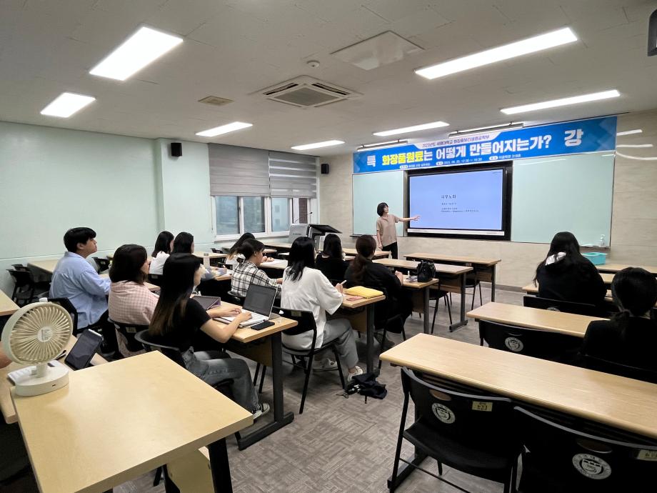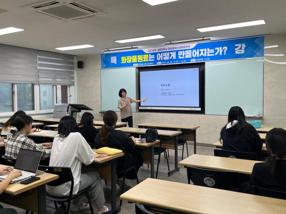 본문 시작 홈으로 커뮤니티 학과소개 학과과정 대학원 커뮤니티 연구동아리 홈페이지가이드 포토갤러리 학과공지 채용정보 학과일정 포토갤러리 유튜브 인스타그램 취업현황 학생회 조직도 졸업생 숏터뷰 포토갤러리 페이스북 트위터 프린트 2023학년도 제2회 화장품생명공학부 학술특강 화장품뷰티학부 3015 2023-09-22 2023학년도 09월 20일 제 2회 화장품산업실무체험 화장품생명공학부 학술특강을 진행하였습니다. 정은선 강사님께서 화장품 원료는 어떻게만들어지는가에 대한 강의를 해주셨습니다. 목록 이전2023학년도 제1회 화장품생명공학부 학술특강 다음 S-BOOT 전문가 초청 취업코칭 특강 담당부서 : 바이오코스메틱학과 담당자 : - 연락처 : 043-649-1638 최종수정일 : 2024-10-26 만족도조사 만족도 조사 이 페이지에서 제공하는 정보에 대하여 만족하시나요? 매우만족 만족 보통 불만족 매우불만족