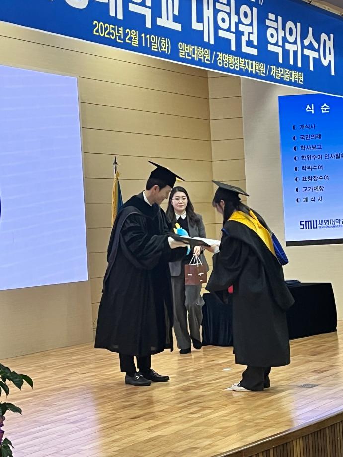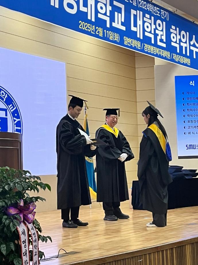본문 시작 홈으로 커뮤니티 학과소개 학과과정 대학원 커뮤니티 연구동아리 홈페이지가이드 포토갤러리 학과공지 채용정보 학과일정 포토갤러리 유튜브 인스타그램 취업현황 학생회 조직도 졸업생 숏터뷰 포토갤러리 페이스북 트위터 프린트 2024 전기 화장품과학과(대학원) 석사 학위수여식 바이오코스메틱학과 2408 2025-02-17 2024학년도 전기 대학원 학위 수여식이 2025년 2월11일 학술관에서 진행되었습니다. 이번 전기 대학원 학위수여식 화장품과학과 졸업 학생은 대학원 석사 10명입니다. 그 중에 이소미, 한예주 학생이 연구업적 우수 총창님 표창을 수상 받았습니다. 총 대학원 학석사연계과정이 3명, 석사과정이 7명이 석사 학위를 수여받았습니다. 목록 이전2024학년도 전기 학위수여식 다음 2025학년도 꿈설계학기 담당부서 : 바이오코스메틱학과 담당자 : - 연락처 : 043-649-1638 최종수정일 : 2024-10-26 만족도조사 만족도 조사 이 페이지에서 제공하는 정보에 대하여 만족하시나요? 매우만족 만족 보통 불만족 매우불만족
