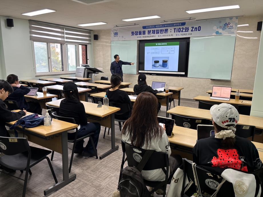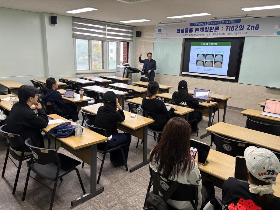 본문 시작 홈으로 커뮤니티 학과소개 학과과정 대학원 커뮤니티 연구동아리 홈페이지가이드 포토갤러리 학과공지 채용정보 학과일정 포토갤러리 유튜브 인스타그램 취업현황 학생회 조직도 졸업생 숏터뷰 포토갤러리 페이스북 트위터 프린트 2025학년도 3차 화장품생명공학세미나 바이오코스메틱학과 1337 2025-10-17 2025학년도 3차 화장품생명공학세미나를 진행했습니다. 목록 이전2025학년도 2차 S-BOOT 특강_Evolution of K-Beauty 다음 2025학년도 F.P.L 동아리 클렌징 오일 및 클렌징 밤 제조 실습 담당부서 : 바이오코스메틱학과 담당자 : - 연락처 : 043-649-1638 최종수정일 : 2024-10-26 만족도조사 만족도 조사 이 페이지에서 제공하는 정보에 대하여 만족하시나요? 매우만족 만족 보통 불만족 매우불만족