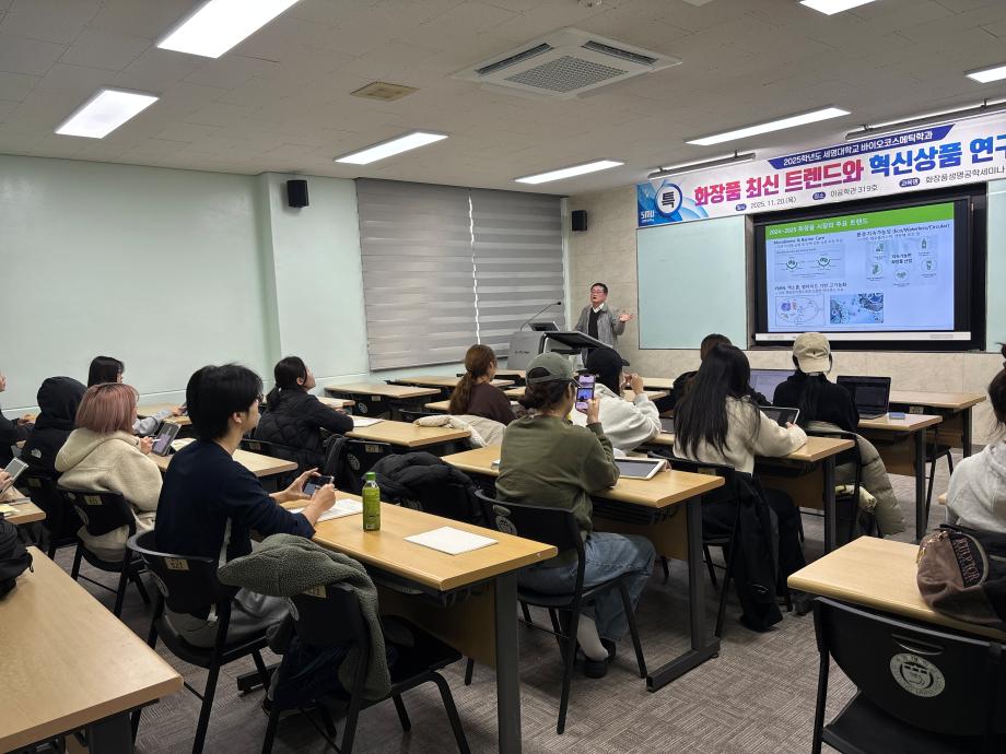 본문 시작 홈으로 커뮤니티 학과소개 학과과정 대학원 커뮤니티 연구동아리 홈페이지가이드 포토갤러리 학과공지 채용정보 학과일정 포토갤러리 유튜브 인스타그램 취업현황 학생회 조직도 졸업생 숏터뷰 포토갤러리 페이스북 트위터 프린트 2025학년도 5차 화장품생명공학세미나 바이오코스메틱학과 1022 2025-11-25 2025학년도 3차 화장품생명공학세미나를 진행했습니다. 목록 이전2025학년도 F.P.L 동아리 미스트 제조 실습 다음 2025학년도 2학기 캡스톤 디자인 발표회 담당부서 : 바이오코스메틱학과 담당자 : - 연락처 : 043-649-1638 최종수정일 : 2024-10-26 만족도조사 만족도 조사 이 페이지에서 제공하는 정보에 대하여 만족하시나요? 매우만족 만족 보통 불만족 매우불만족