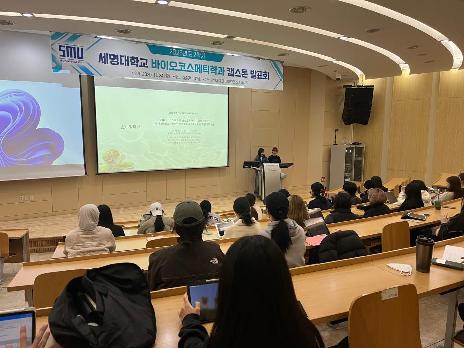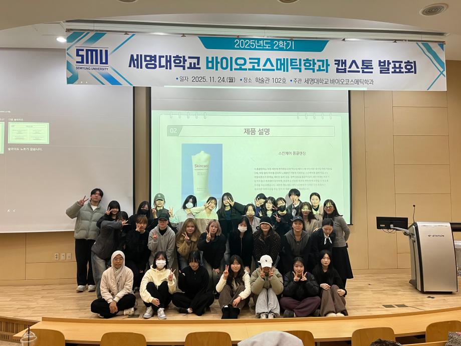 본문 시작 홈으로 커뮤니티 학과소개 학과과정 대학원 커뮤니티 연구동아리 홈페이지가이드 포토갤러리 학과공지 채용정보 학과일정 포토갤러리 유튜브 인스타그램 취업현황 학생회 조직도 졸업생 숏터뷰 포토갤러리 페이스북 트위터 프린트 2025학년도 2학기 캡스톤 디자인 발표회 바이오코스메틱학과 1101 2025-11-25 바이오코스메틱학과에서는 11월 24일 2025학년도 2학기 캡스톤 디자인 발표회를 진행하였습니다. 목록 이전2025학년도 5차 화장품생명공학세미나 다음 2025학년도 F.P.L 동아리 핸드크림 제조 실습 담당부서 : 바이오코스메틱학과 담당자 : - 연락처 : 043-649-1638 최종수정일 : 2024-10-26 만족도조사 만족도 조사 이 페이지에서 제공하는 정보에 대하여 만족하시나요? 매우만족 만족 보통 불만족 매우불만족
