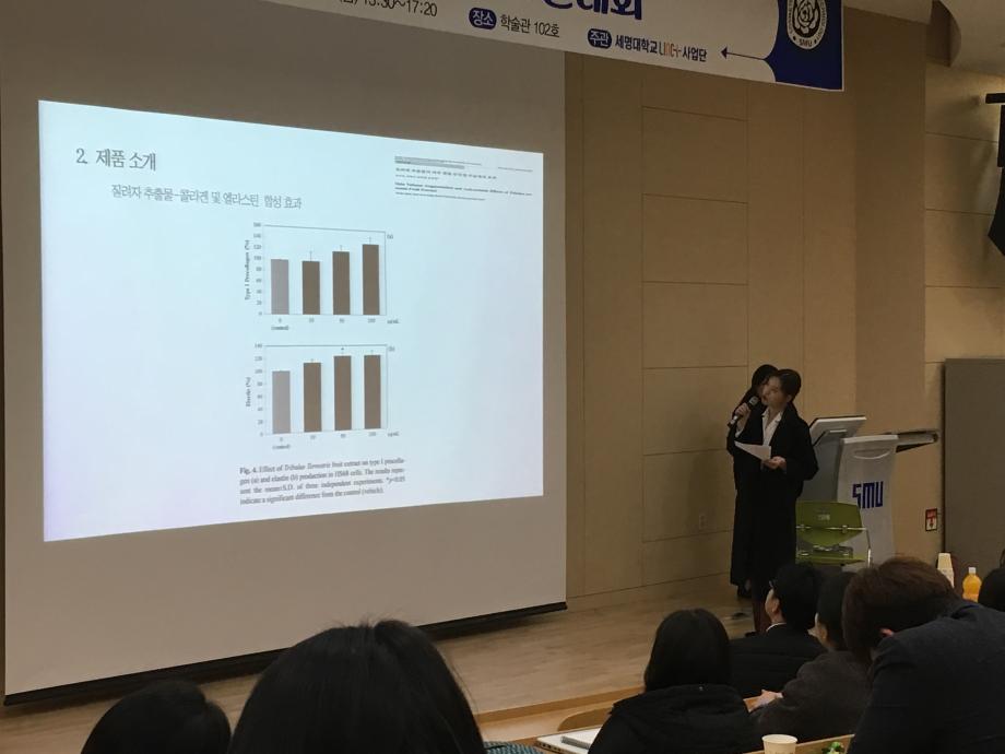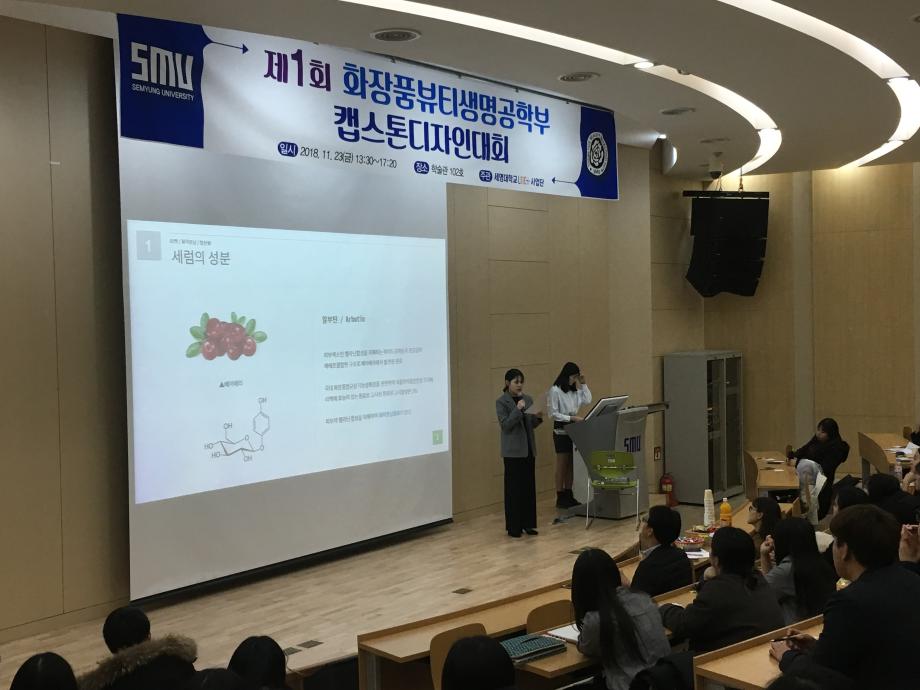 본문 시작 홈으로 커뮤니티 학과소개 학과과정 대학원 커뮤니티 연구동아리 홈페이지가이드 포토갤러리 학과공지 채용정보 학과일정 포토갤러리 유튜브 인스타그램 취업현황 학생회 조직도 졸업생 숏터뷰 포토갤러리 페이스북 트위터 프린트 제1회 화장품뷰티생명공학부 캡스톤 디자인 대회 화장품뷰티생명공학부 7427 2018-12-04 지난 11월 23일 학술관 102호에서 장혜인 교수님의 지도하에 제1회 캡스톤디자인 대회가 열렸습니다. 총 17개 조가 참가하여 다양한 화장품에 대한 아이디어를 발표하였고 항목별로 평가하는 시간을 가졌습니다. 발표하는 학생뿐만 아니라 평가를 하는 학생들도 질문과 답변을 주고 받으며 열의가 돋보이는 발표시간이었습니다. 목록 이전제4회 국내 화장품전문가 초청 세미나 다음 2018 동계 LINC+ 바이오산업품질관리학 학술 특강 담당부서 : 바이오코스메틱학과 담당자 : - 연락처 : 043-649-1638 최종수정일 : 2024-10-26 만족도조사 만족도 조사 이 페이지에서 제공하는 정보에 대하여 만족하시나요? 매우만족 만족 보통 불만족 매우불만족